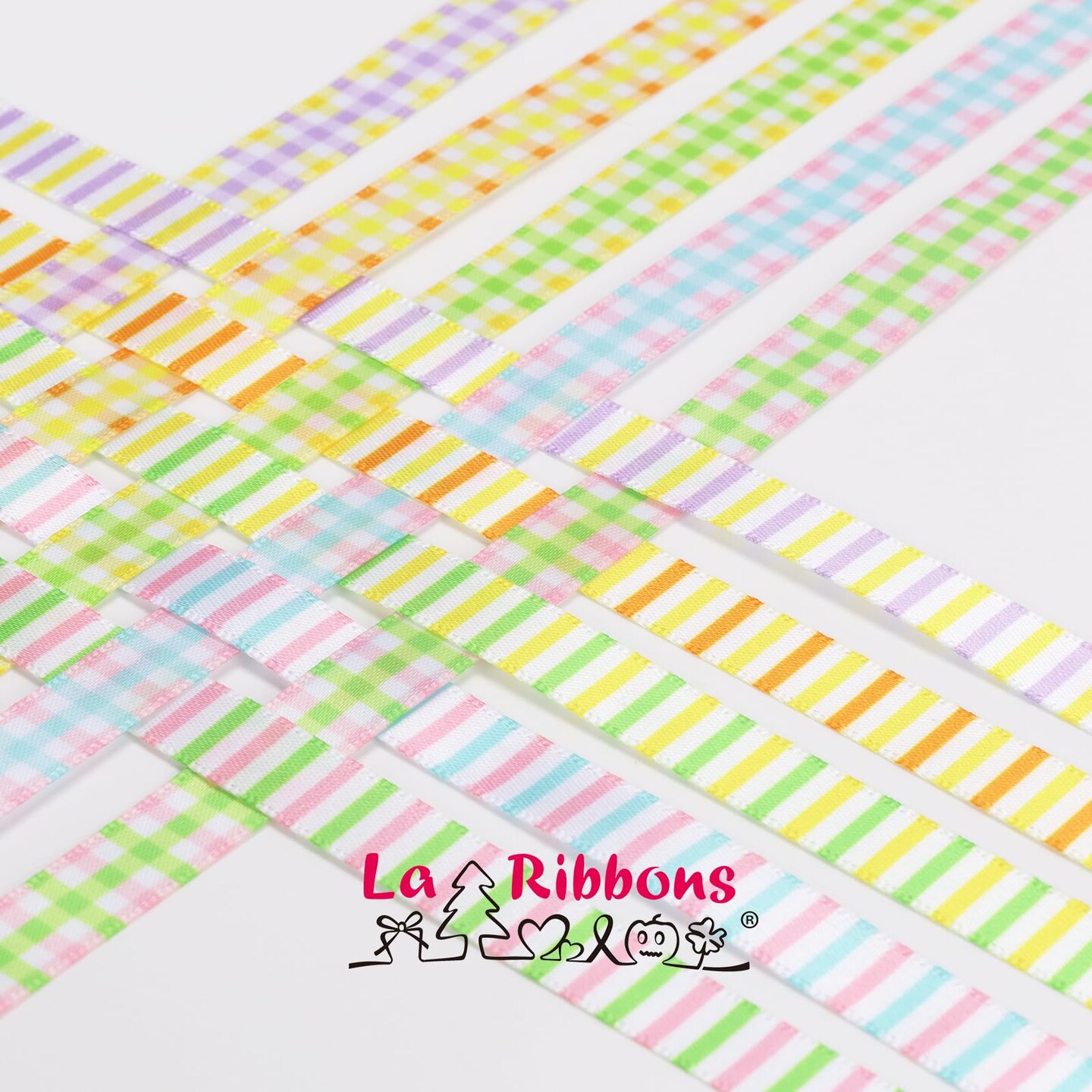 10 Color 100 Yards Striped and Plaid Satin Ribbon Variety Pack, 3/8" X 10 Yards/Roll Assorted Spring Easter Ribbons for Crafts, Gift Wrapping, Hair Bows