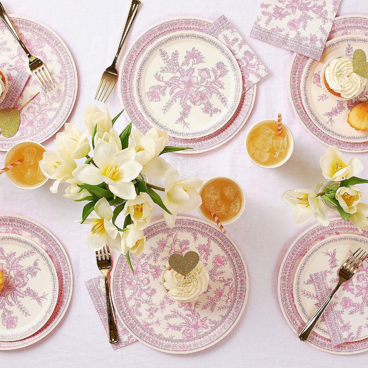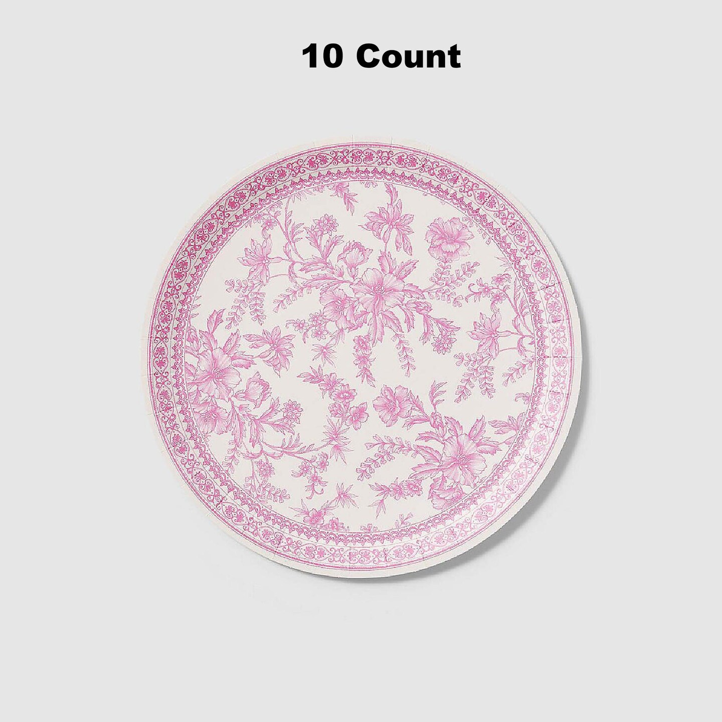 10 Count Pink Toile Large Paper Plates Elegant Disposable Party Supplies 9.25 Inches