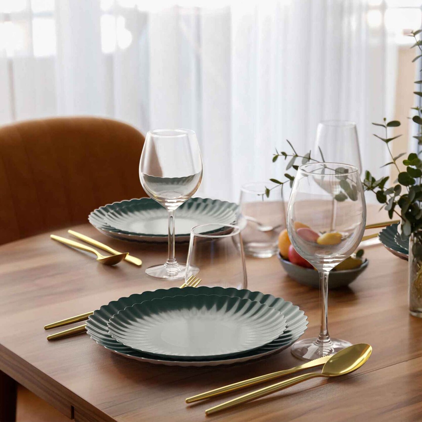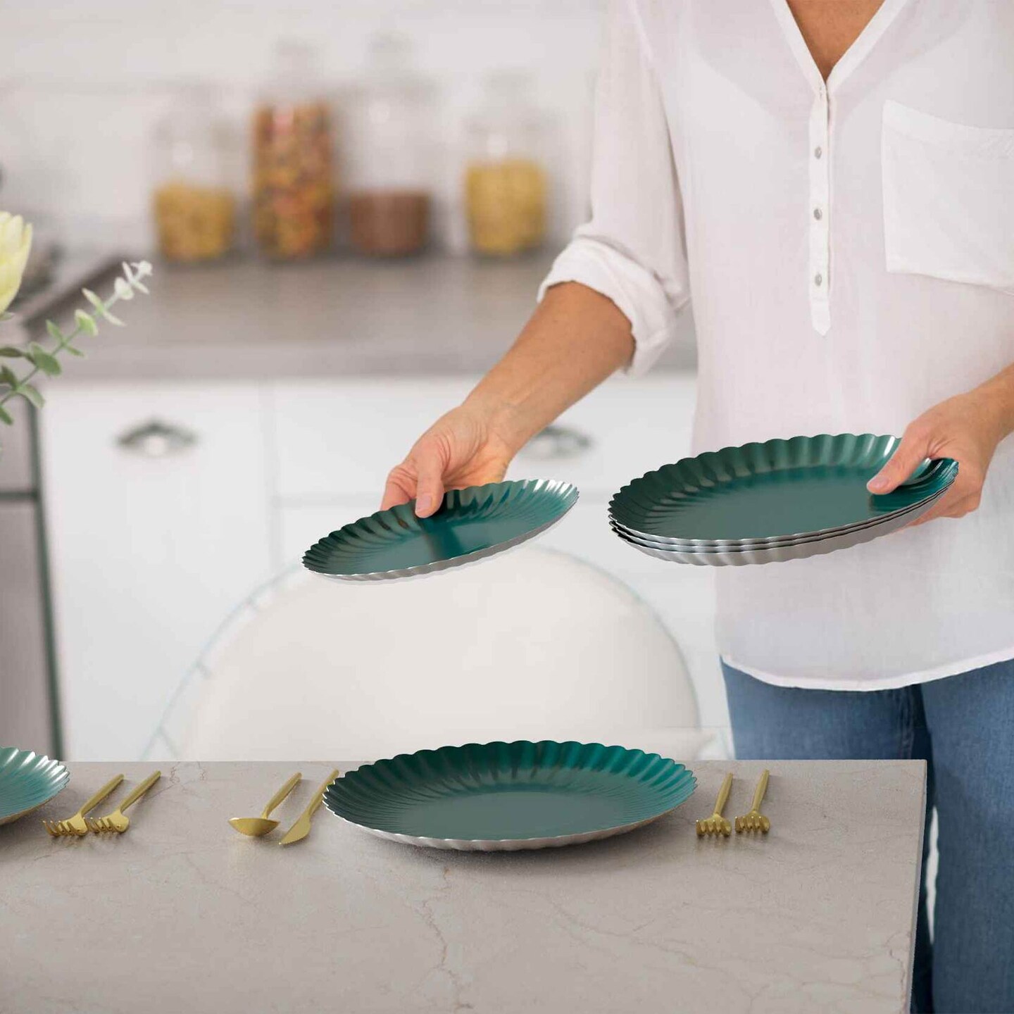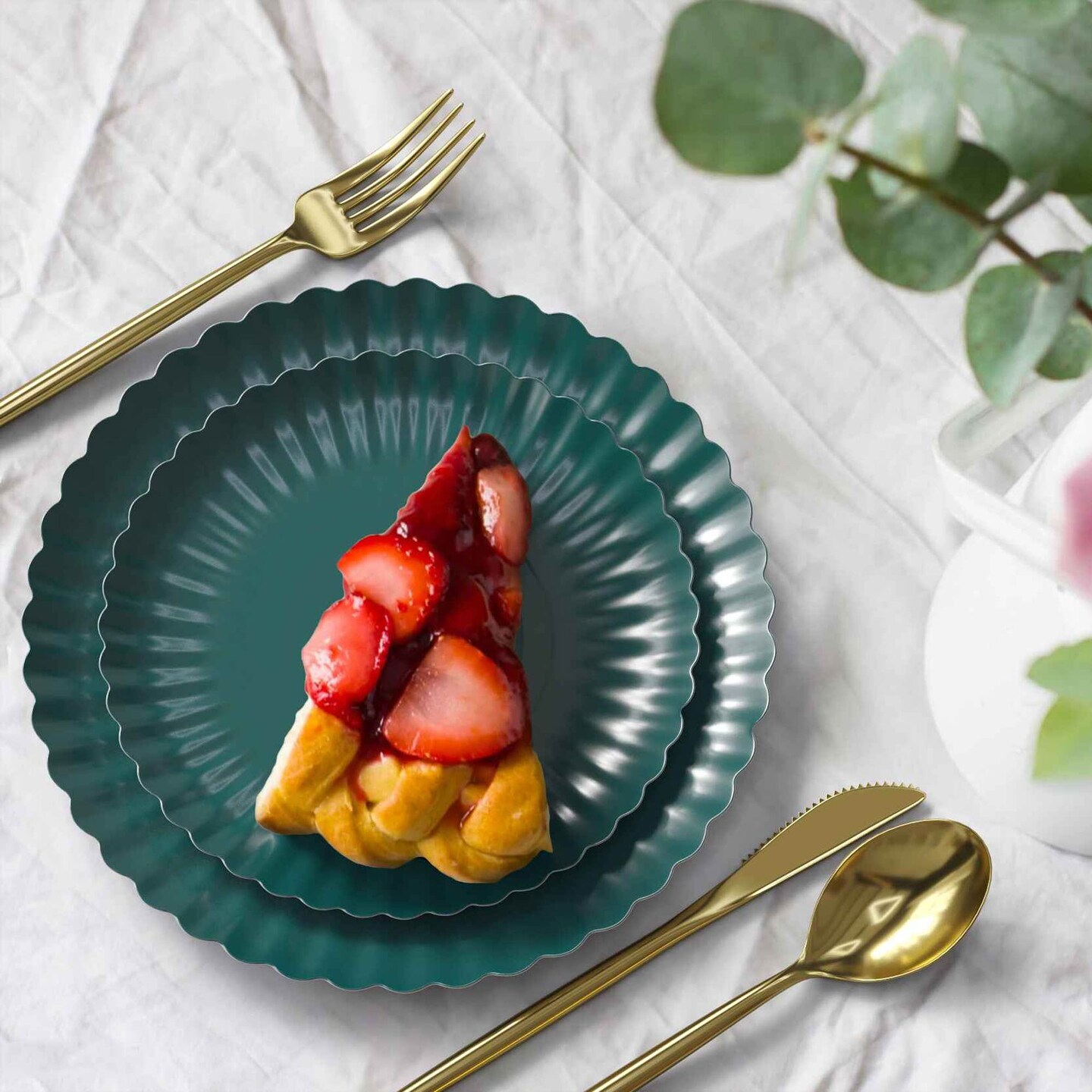 10 Count Scalloped Black Aqua Paper Plates for Party Dinner Birthday Events 10.5 Inch