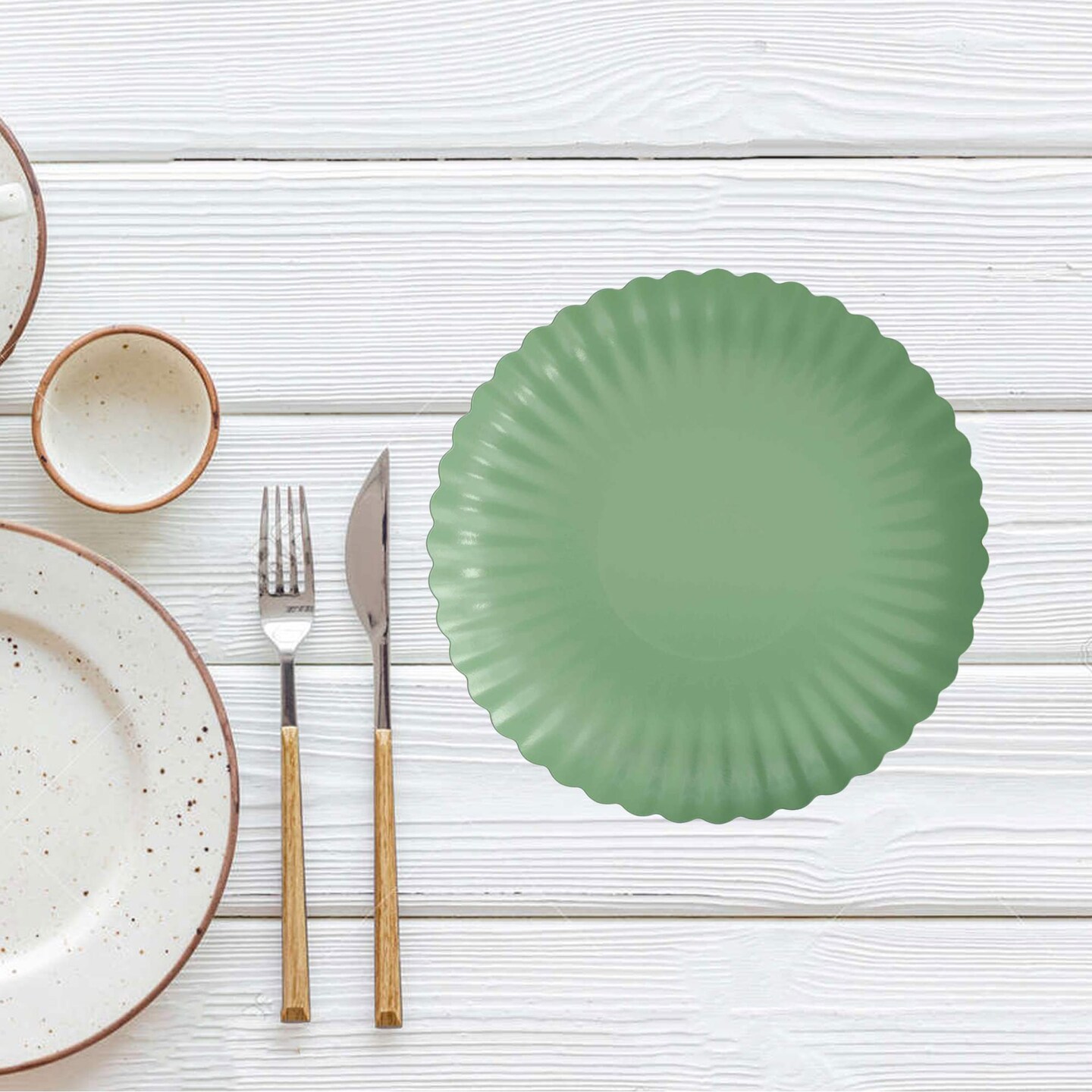 10 Count Scalloped Paper Plates Matcha Green 8.5 Inch Disposable Party Supplies