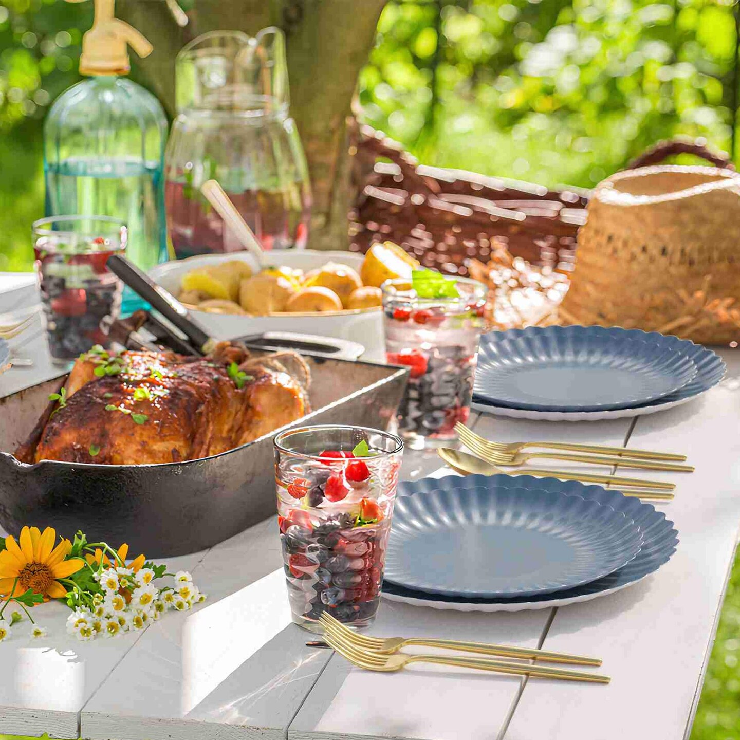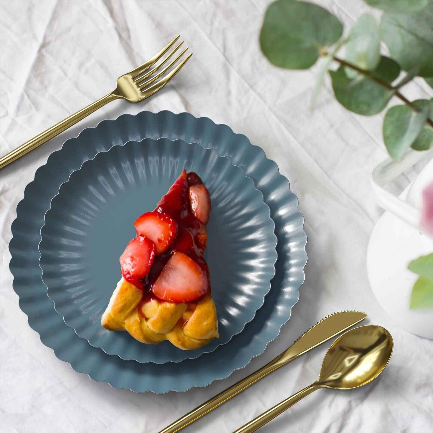 10 Count Slate Blue Scalloped Paper Plates Elegant Disposable 8.5 Inch Party Supplies