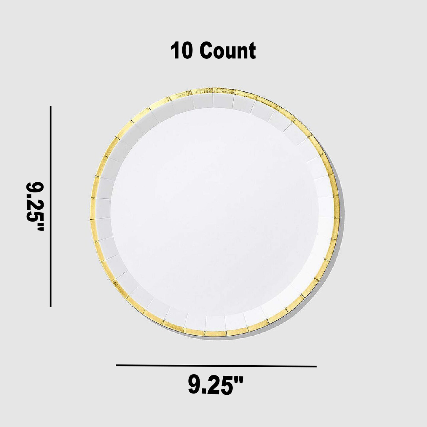 10 Count White Gold Large Paper Plates 9.25 Inch Elegant Party Plates for Events and Dining