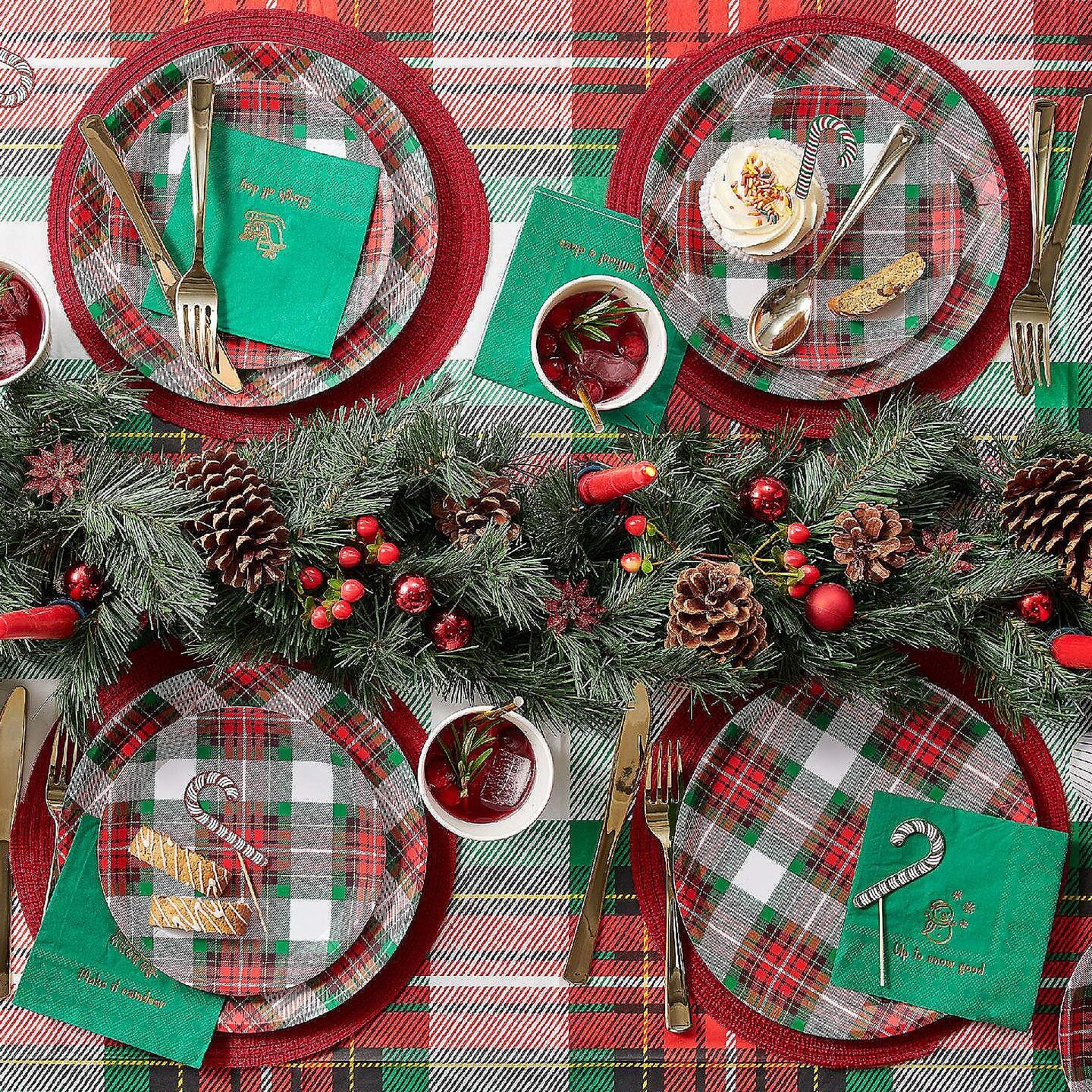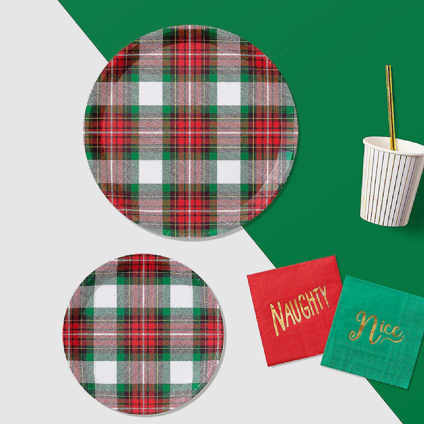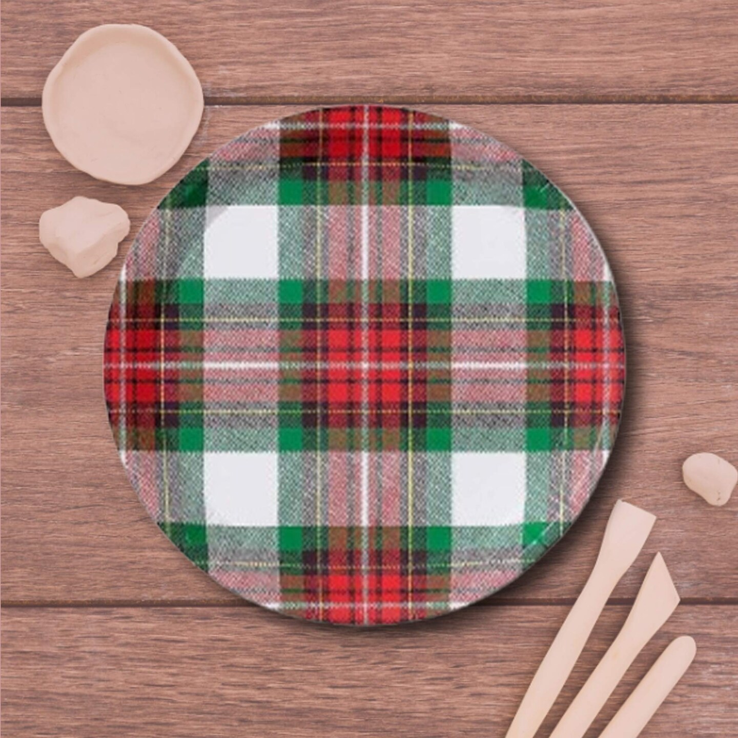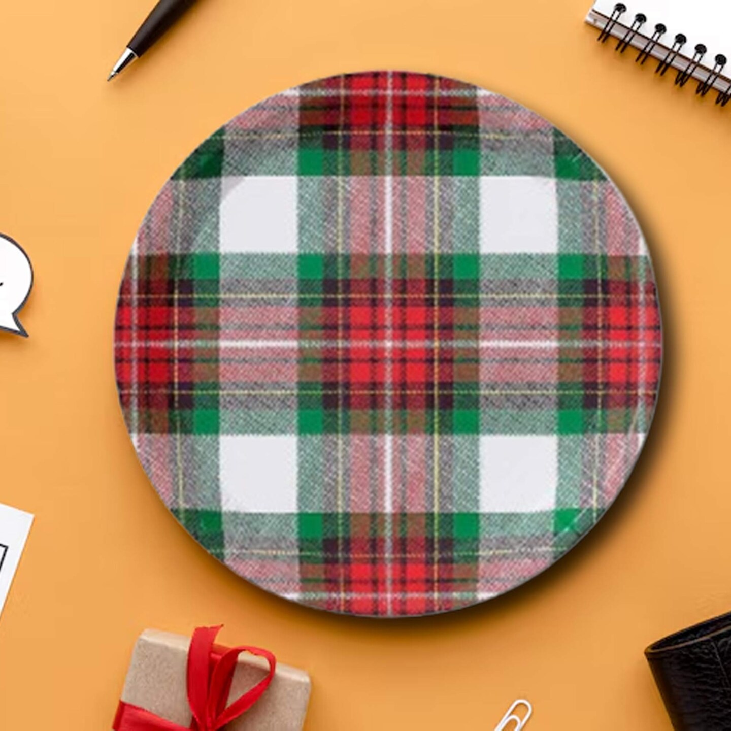 10 Count Winter Plaid Small Paper Plates 7.25 Inch Festive Holiday Plates for Parties