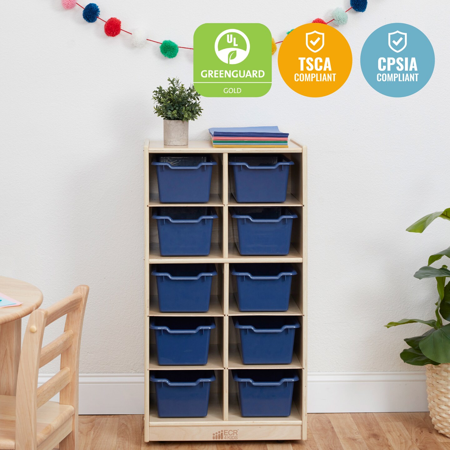 10 Cubby Mobile Tray Cabinet with 10 Scoop Front Storage Bins