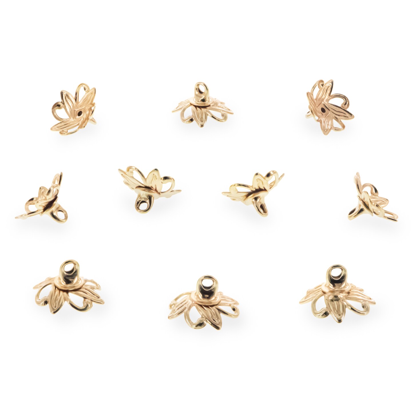 10 Floral Lily Gold Brass Metal Ornament Caps Ball or Egg Top Findings, End Caps 0.35 Inches (9 mm)