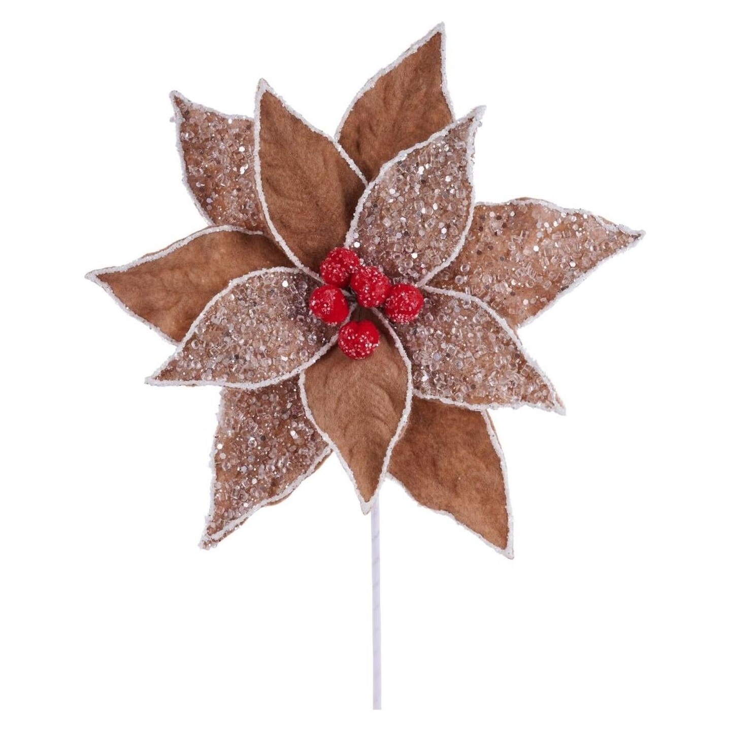 10" Frosted Gingerbread Poinsettia Pick