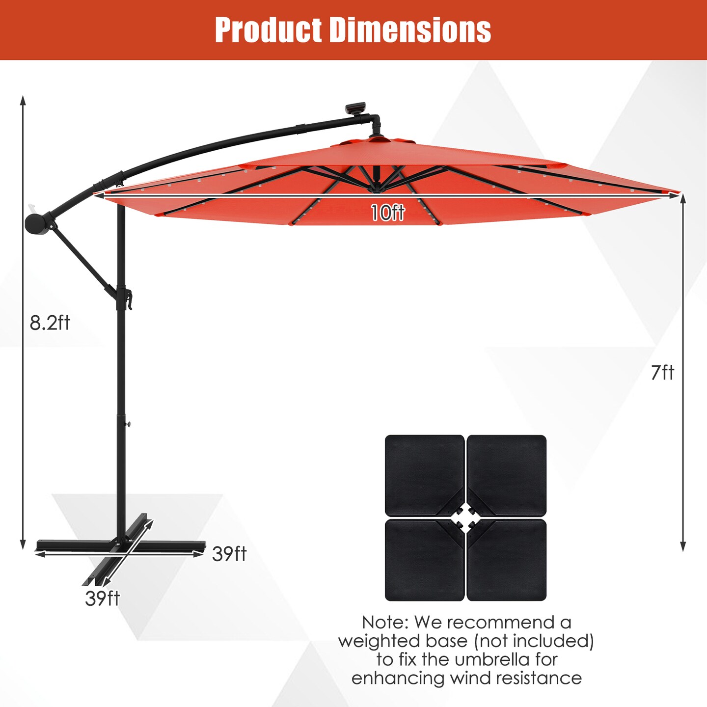 10 Ft Solar Cantilever Umbrella Orange Polyester Fabric Tilt Crank Handle Outdoor