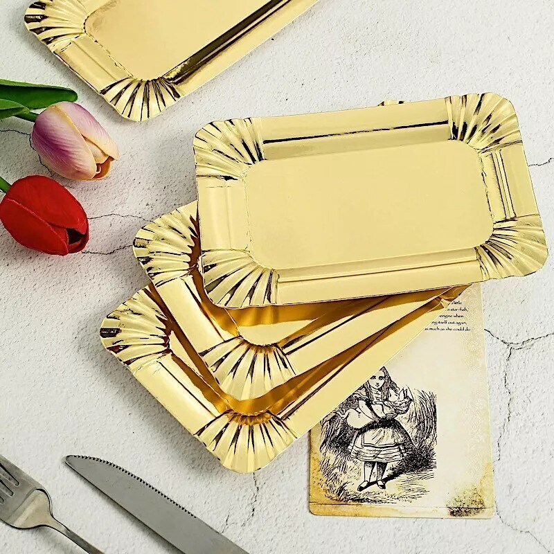 10 Gold 6" Rectangular Mini Paper Serving Trays Scalloped Design Party Supplies