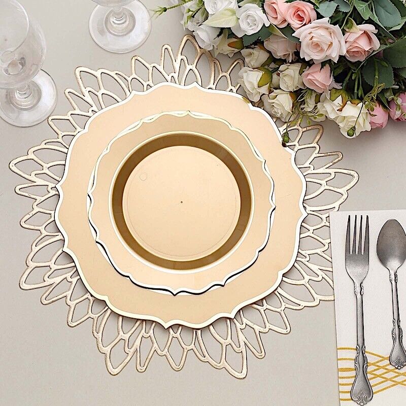 10 GOLD 8" Round Plastic Dinner Plates GOLD Scalloped Rim