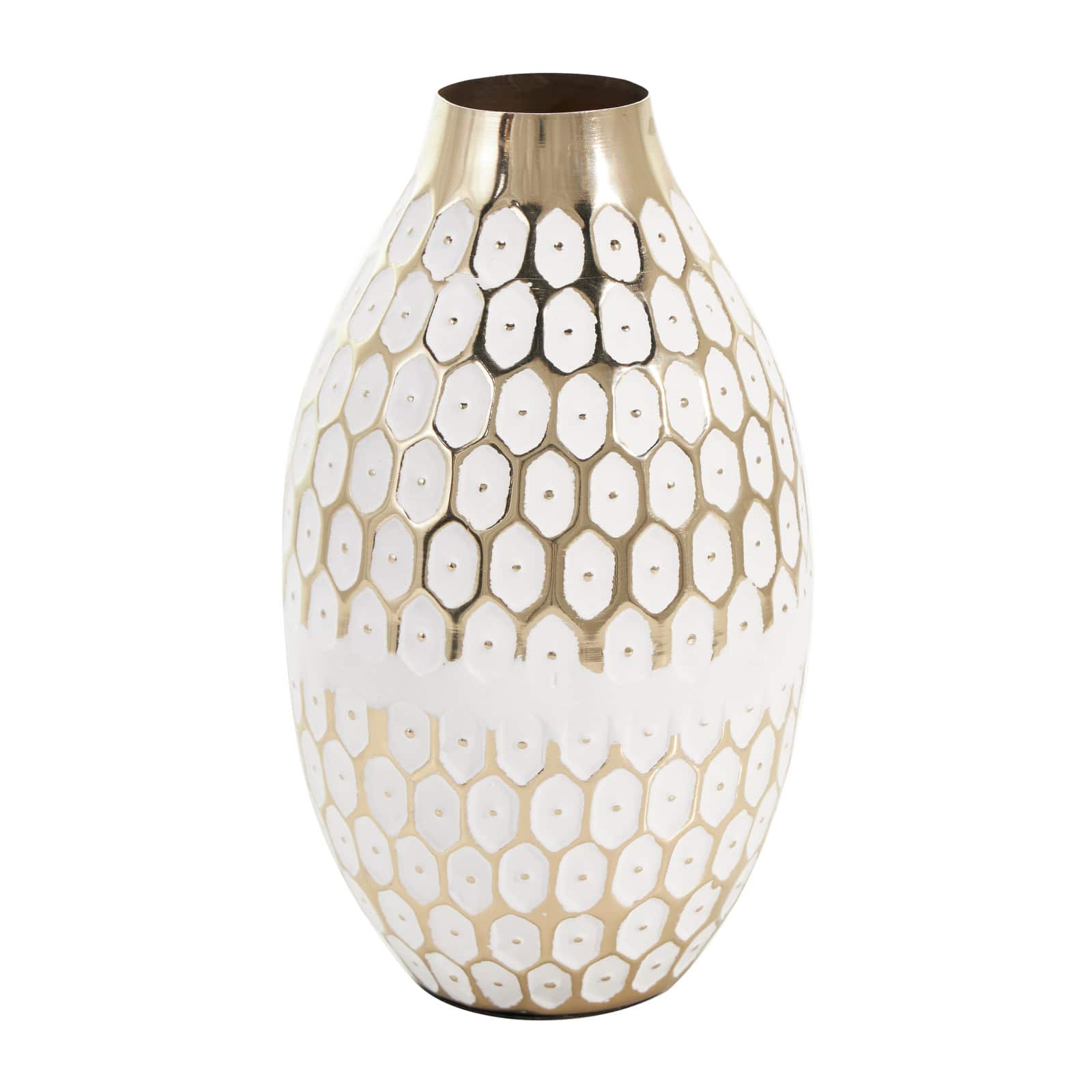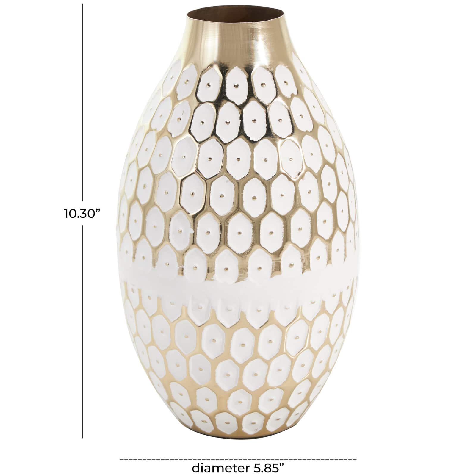 10" Gold Metal Geometric Geometric Dot Vase with White Accents
