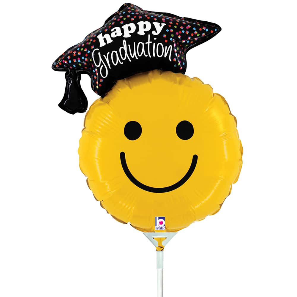 10" Graduation Smiley Stick Balloon
