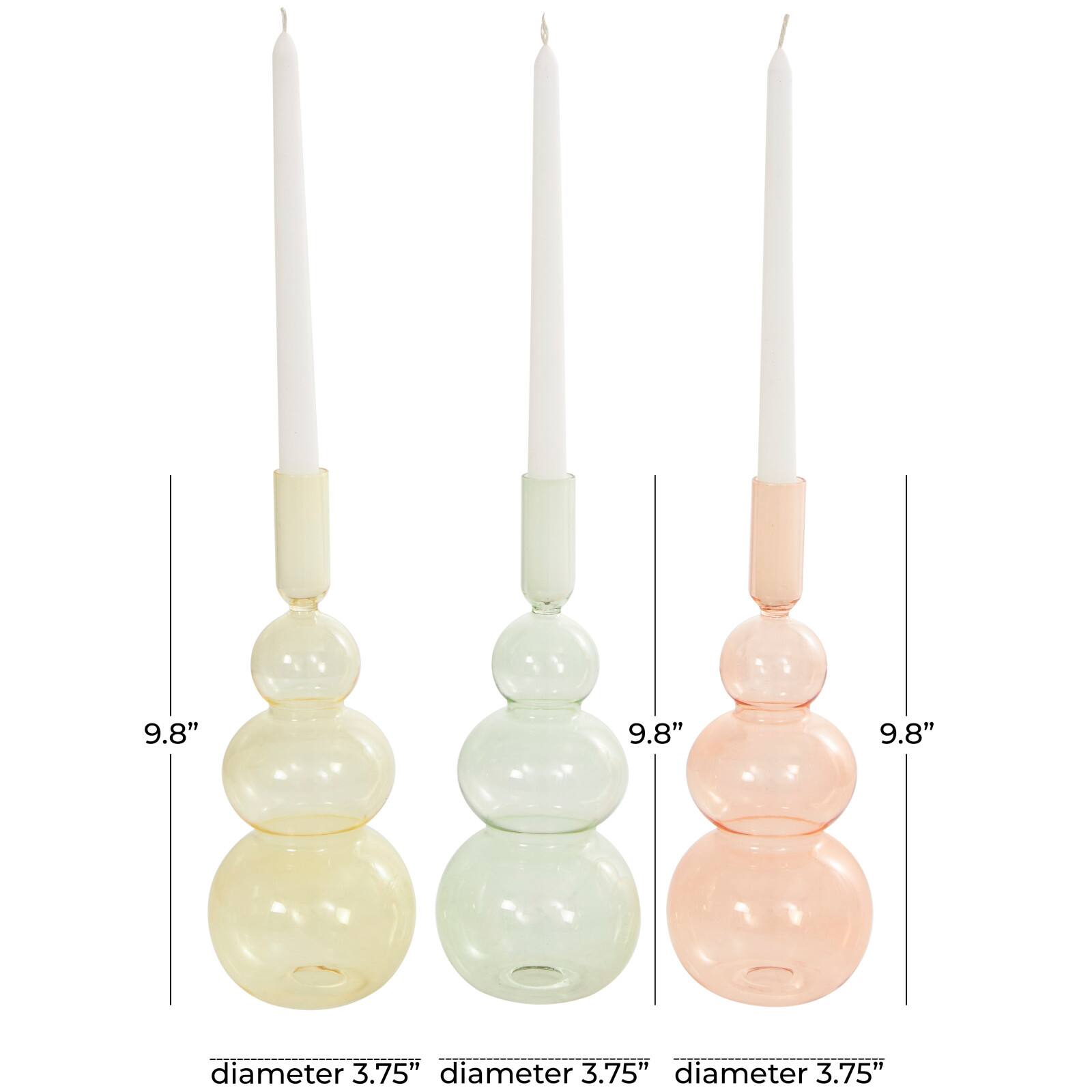 10" Multicolor Glass Triple Ascending Bubble Taper Candle Holder Set, 3ct.
