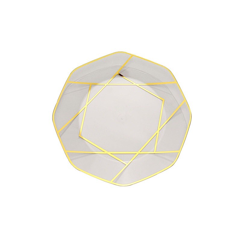 10" Octagon Dinner PLASTIC PLATES Gold Geometric Disposable