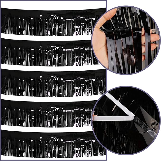 10 Pack 10 Feet Black Fringe Garland Foil Fringe Garland Metallic Tinsel Streamers Fringe Backdrop Banner for Parade Floats Birthday Party Decorations Halloween Christmas Decoration (Black)