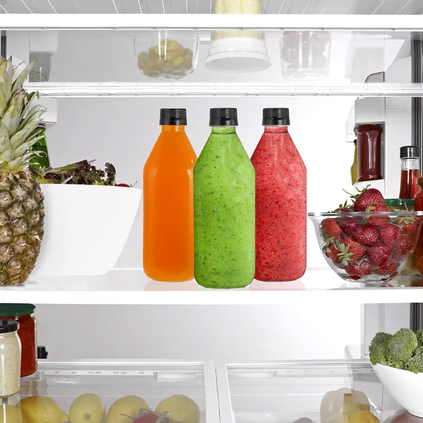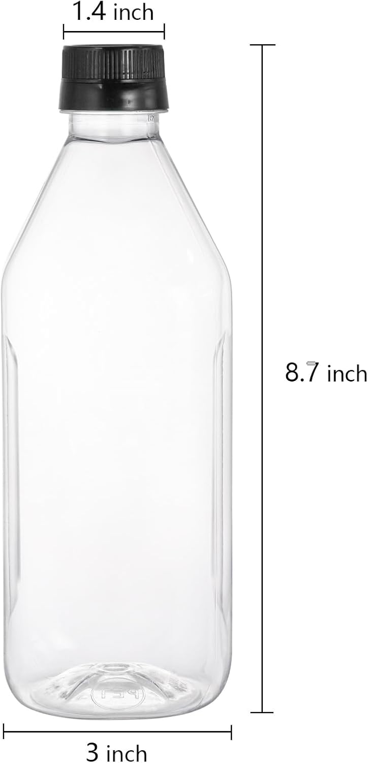 10 Pack 33 Oz Plastic Juice Bottles with Black Caps