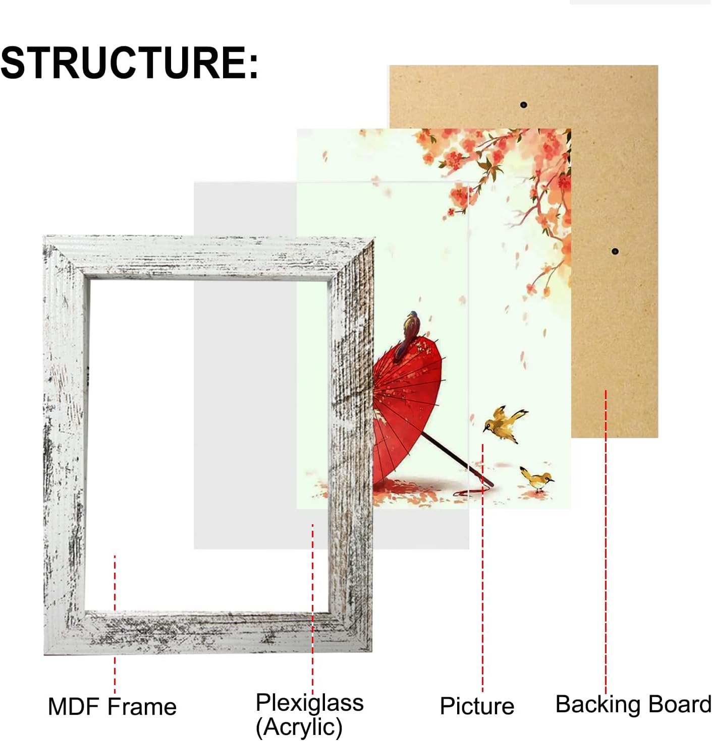 10 Pack Picture Frame Sets with Different Finishes & Sizes - 8x10, 5x7, 4x6 Frames (Rustic White)