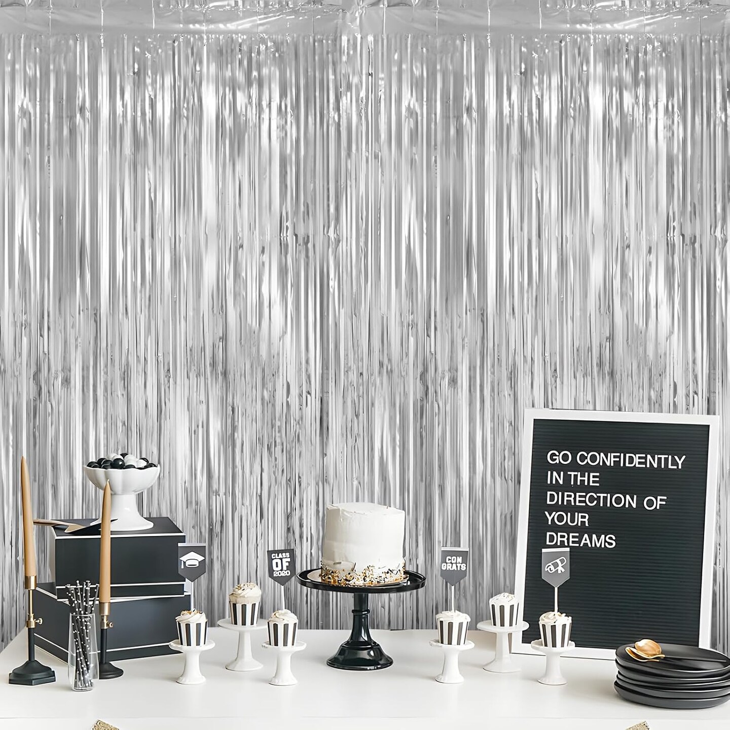 10 Pack Silver Themed Party Decorations, 3.3x6.6 ft DiscoFoil Fringe Curtains, Tinsel Backdrop, Wedding or Engagement Photo Booth Prop Streamer Backdrop for Birthday, New Year's Eve Countdown