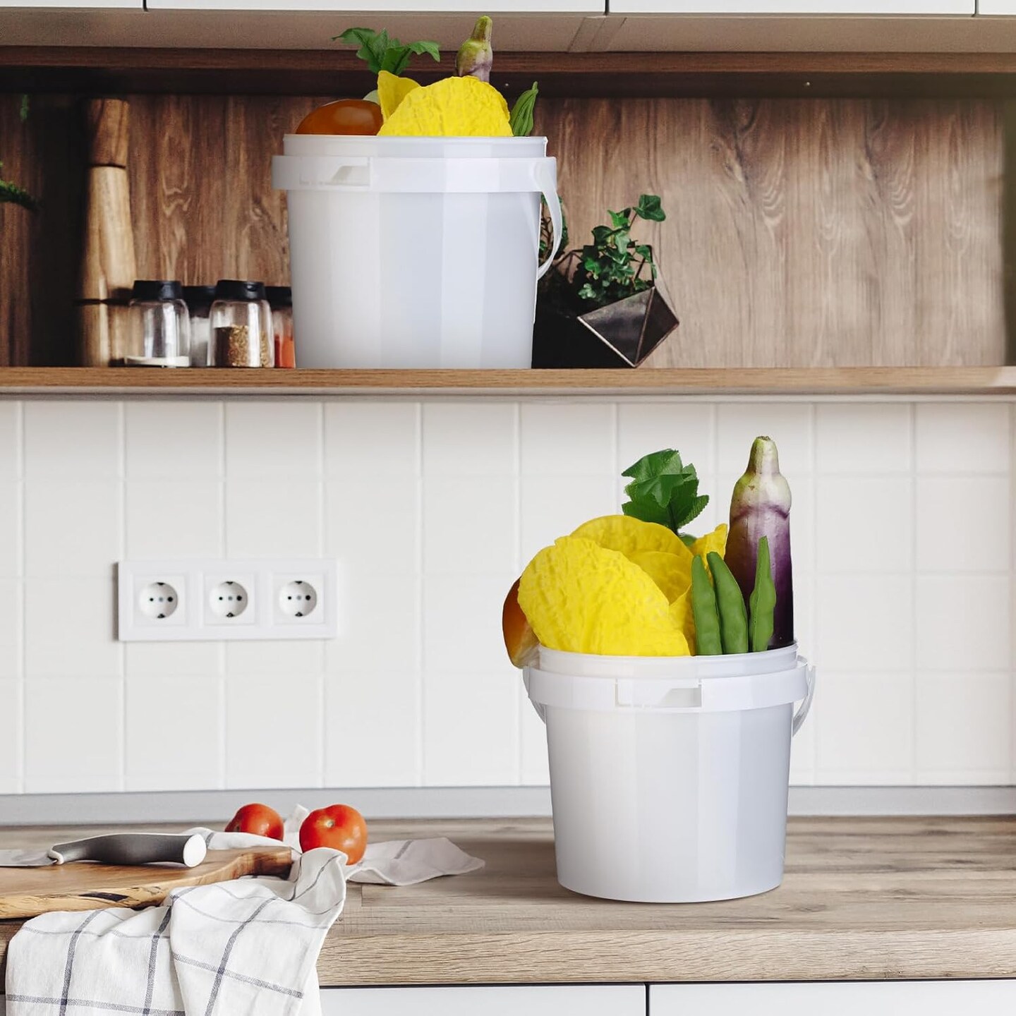 10 Pack White Plastic Bucket (White) 13.58"L x 6.5"W x 6.5"H