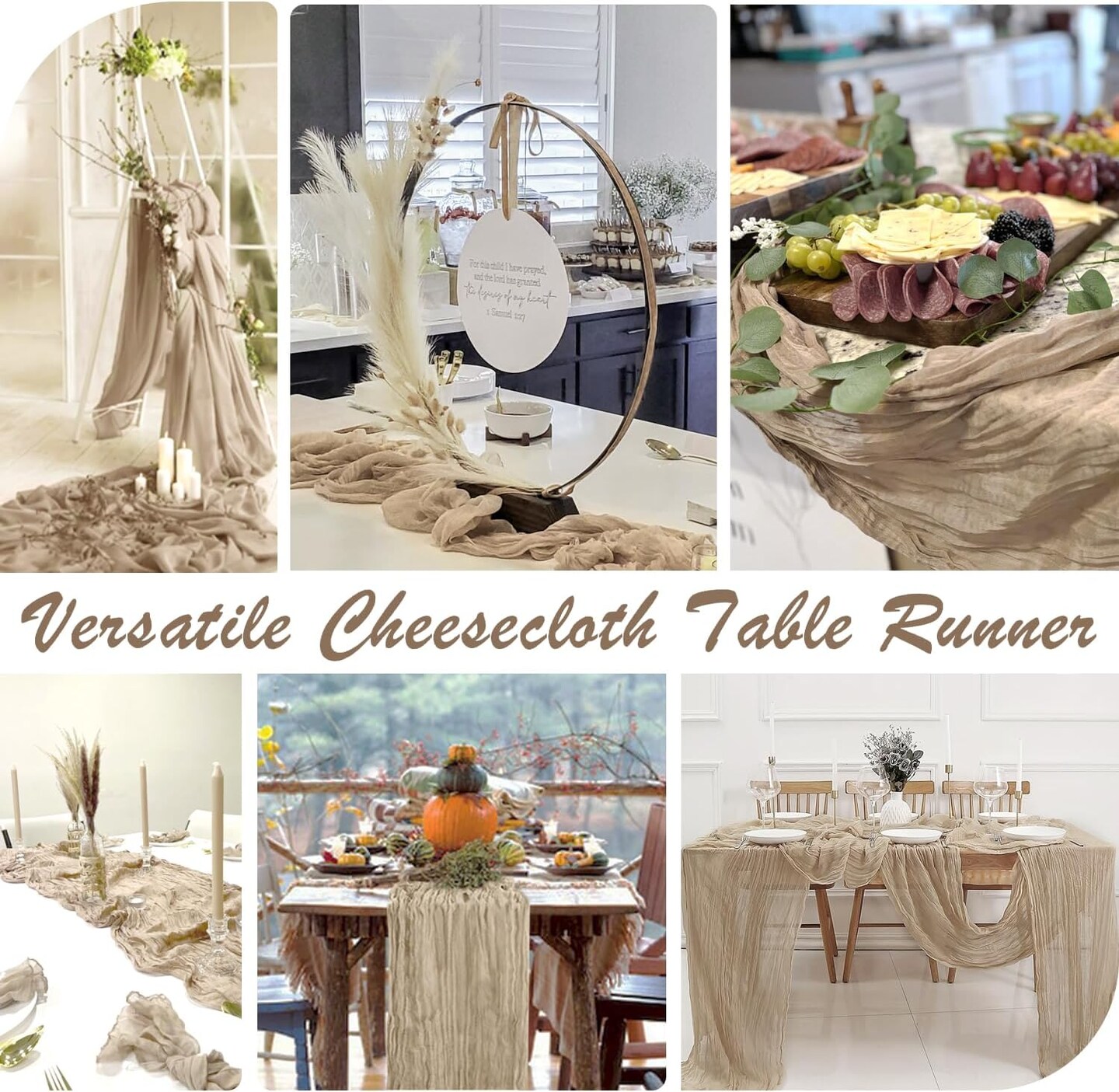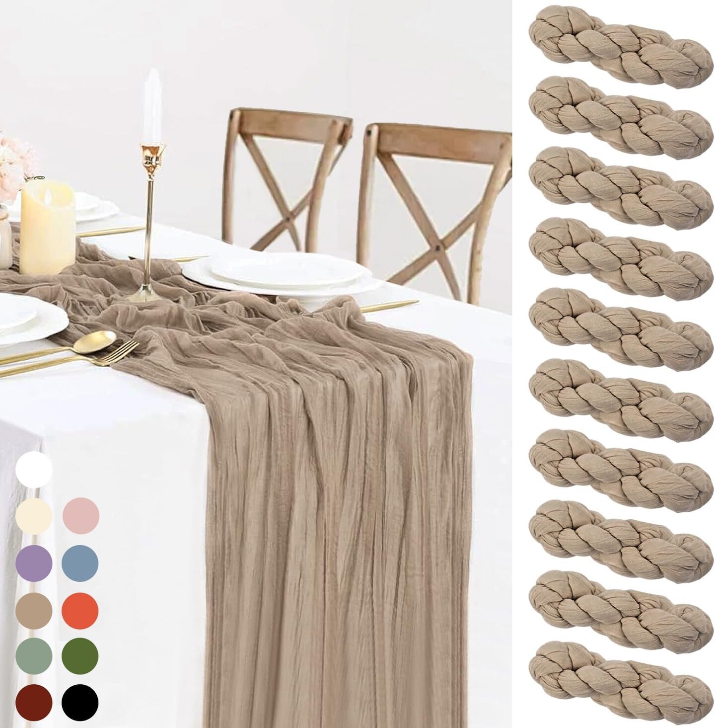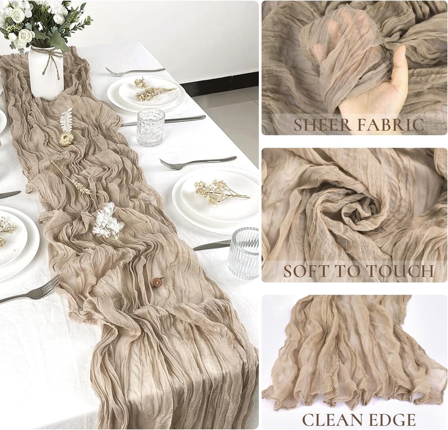 10 Packs Cheesecloth Table Runner 35x120 inch, Nude Table Runner 10ft Cheese Cloth Table Runner Gauze Rustic Table Runner for Bridal Shower Decorations, Wedding Thanksgiving Christmas Birthday Decor
