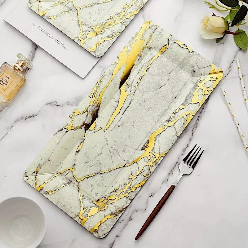10 pcs 16" Ivory Gold long Rectangle Paper Serving Trays Marble Design