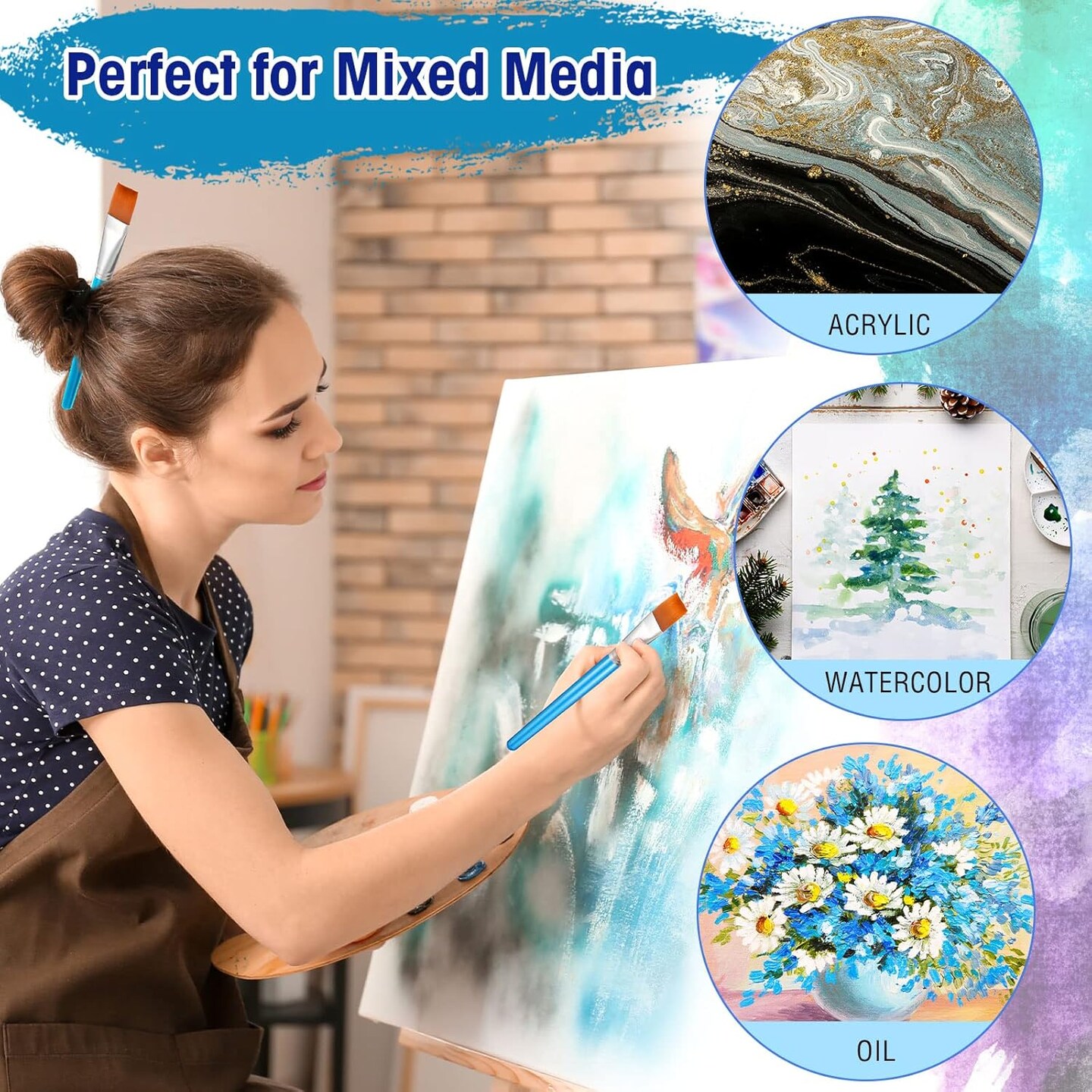 10 Pcs 3/4 Inch Flat Paint Brushes Acrylic Painting Craft Accessories Small Watercolor Paint Brushes Bulk for Adult Artist Detail Oil Canvas Face(8.1 x 0.9 x 3/4 Inch,Sky Blue)