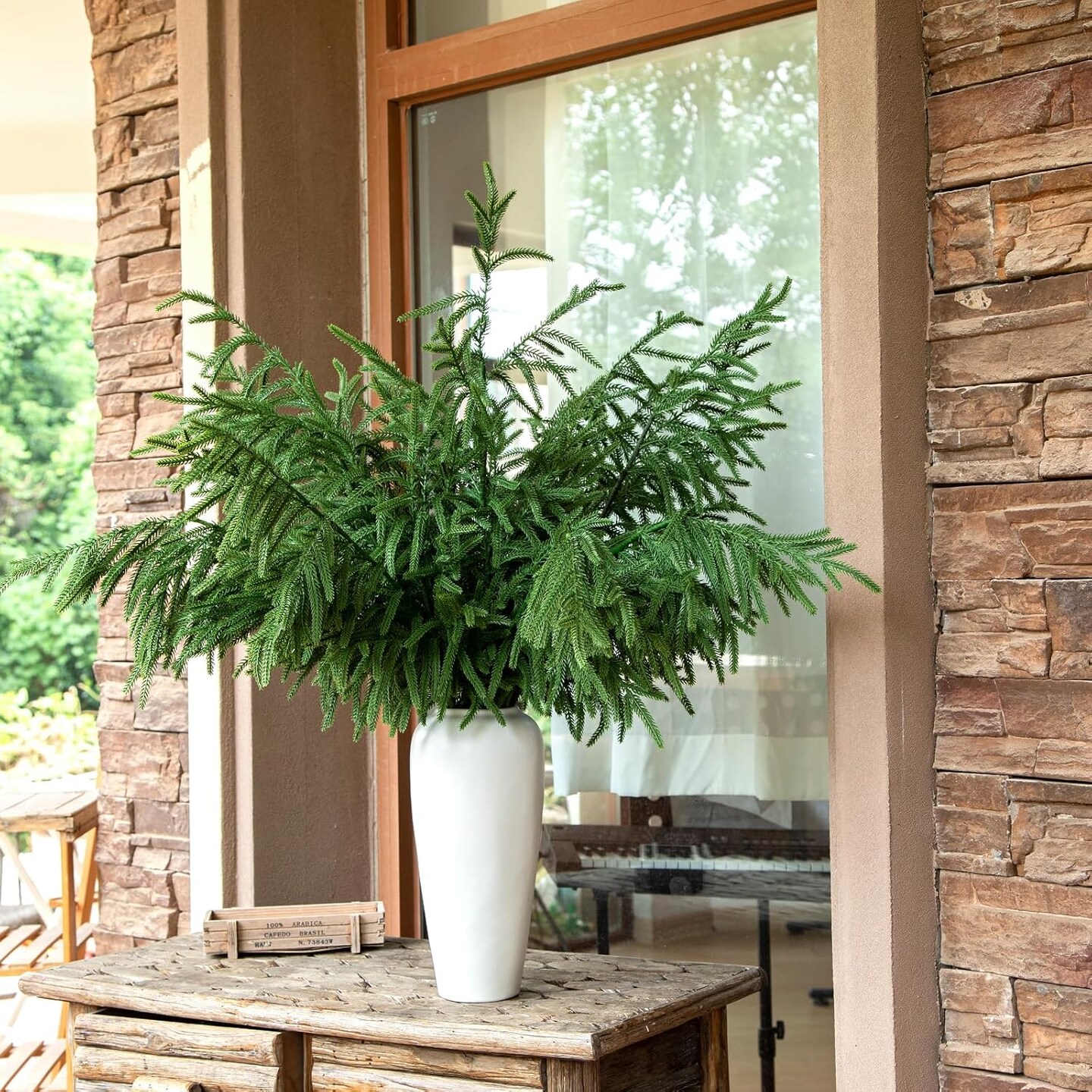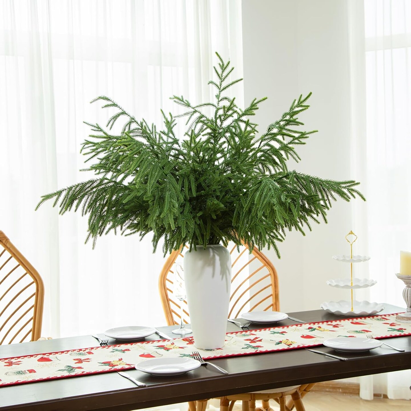 10 Pcs 36 Inch Artificial Norfolk Pine Stems Faux Christmas (Green) 0.78"D x 7.87"W x 36"H