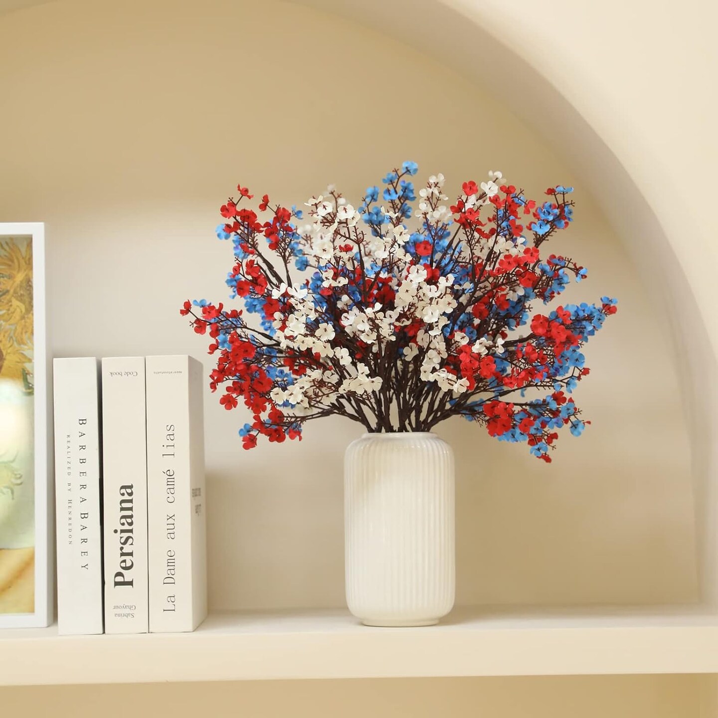 10 Pcs 4th of July Flowers Artificial Babys Breath Fake Silk Patriotic Flowers for Independence Day Home Decor Floral Arrangement Table Centerpieces (10, Mix)