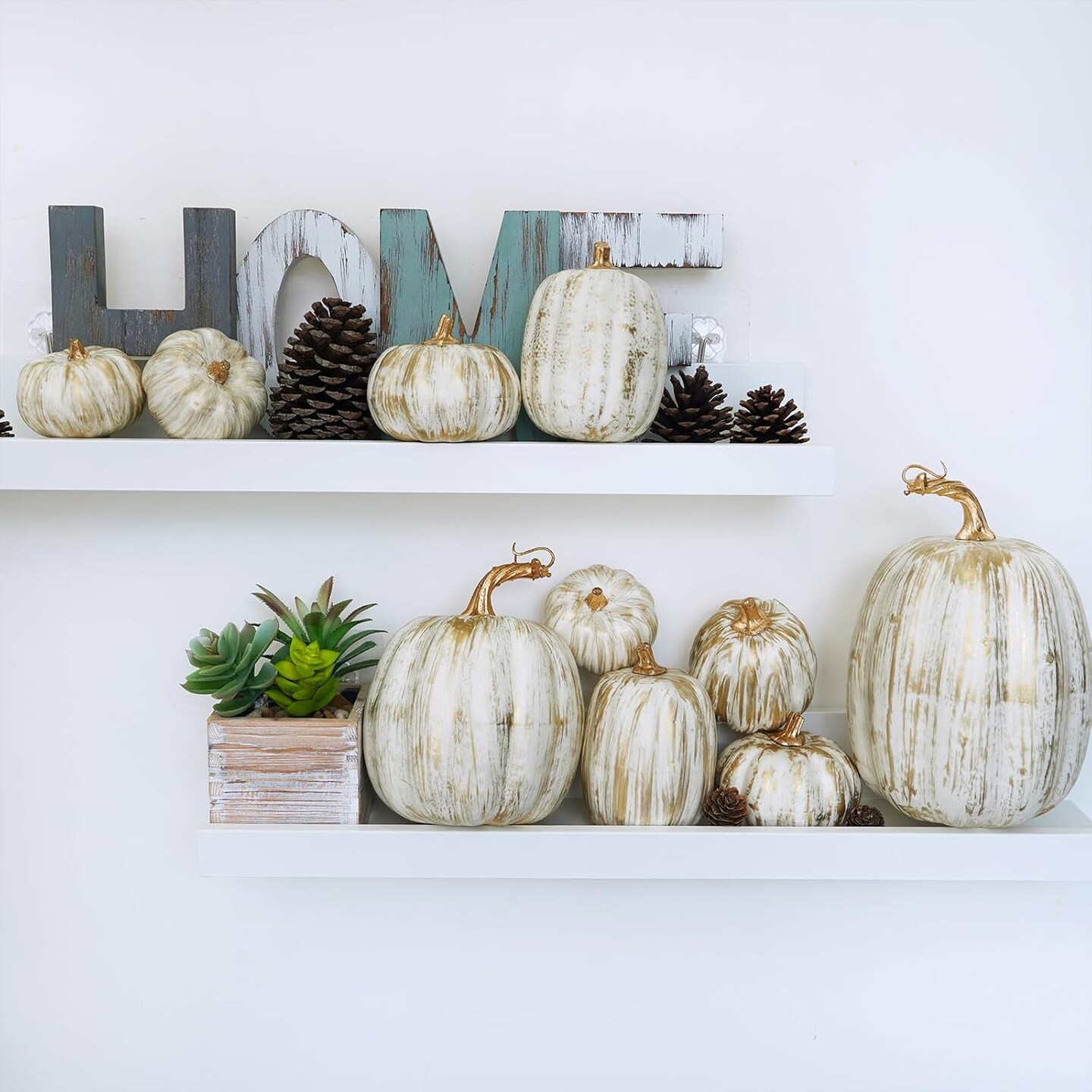 10 Pcs Assorted Fall Artificial Pumpkins - Gold & White