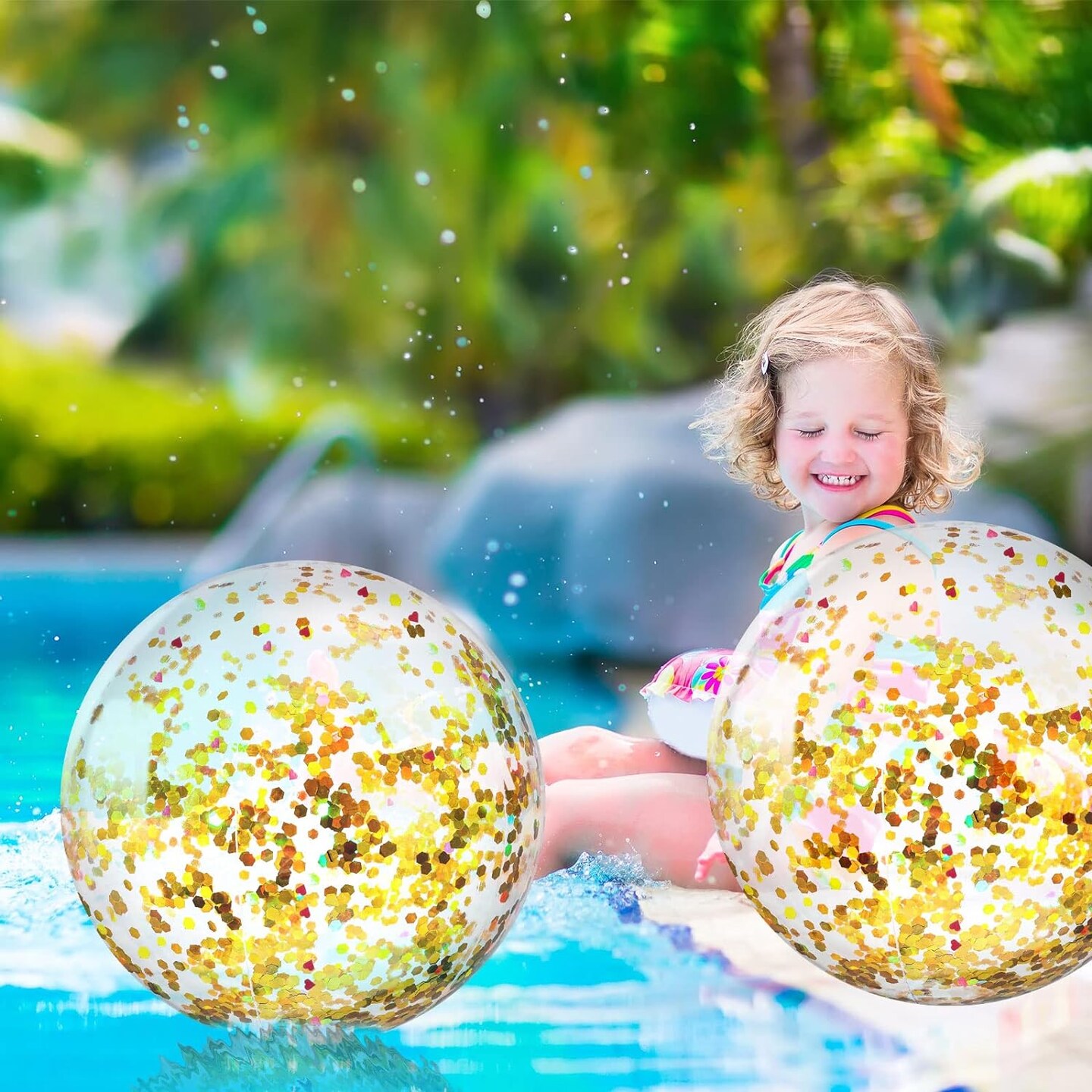 10 Pcs Inflatable Glitter Beach Balls 16 Inch Sparkly Confetti (Gold)