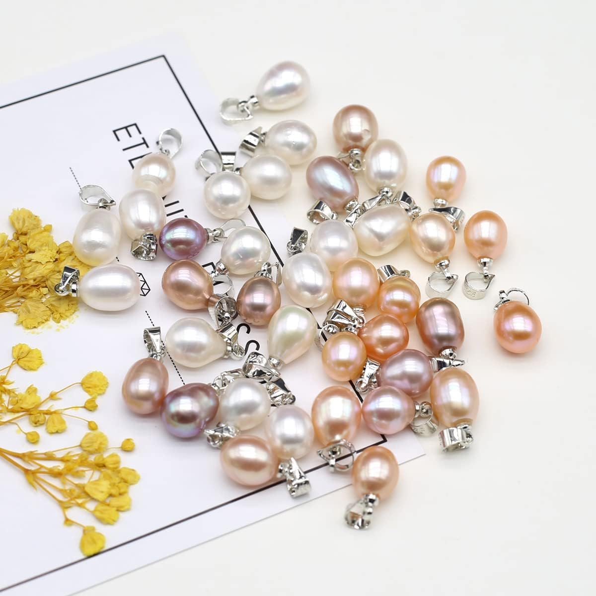 10 Pcs Natural Pearl Pendants - Rice Shape Cultured Freshwater Mixed Color Pearl Bead Pendant Charms for Jewelry Making