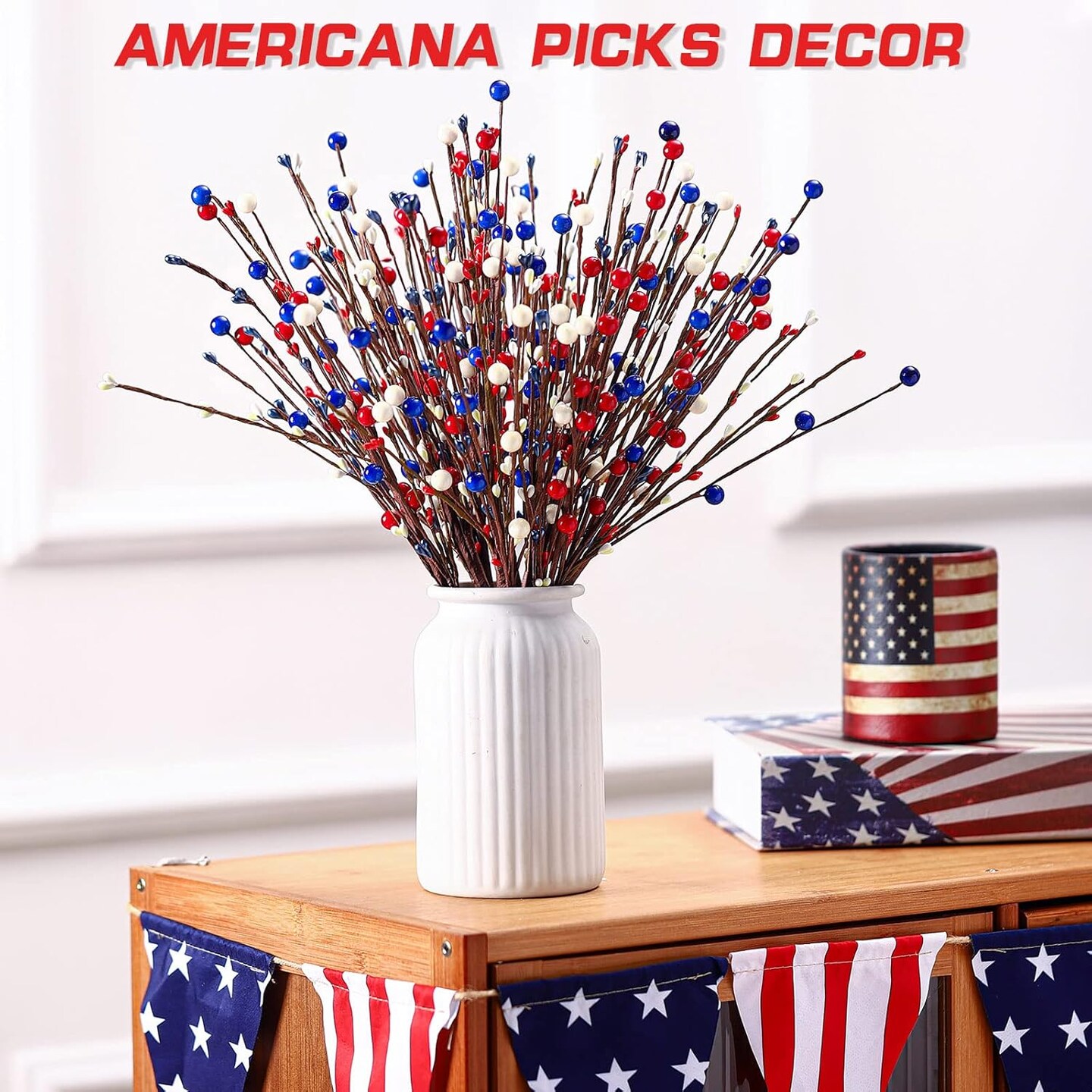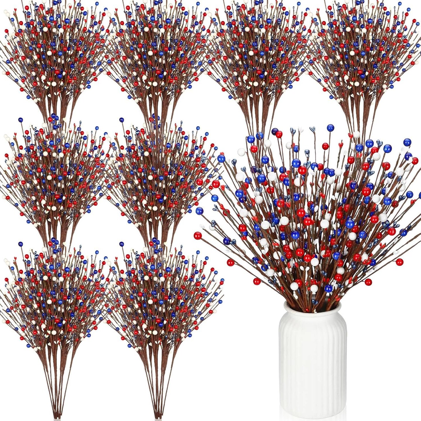 10 Pcs Patriotic Berry Stem Picks 4th of July Artificial