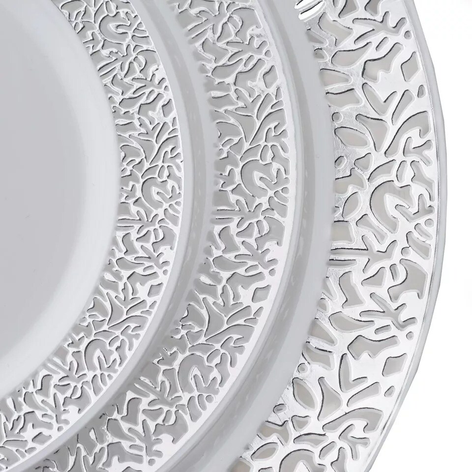 10 pcs Plastic WHITE with Silver Rim 6" PLATES Disposable
