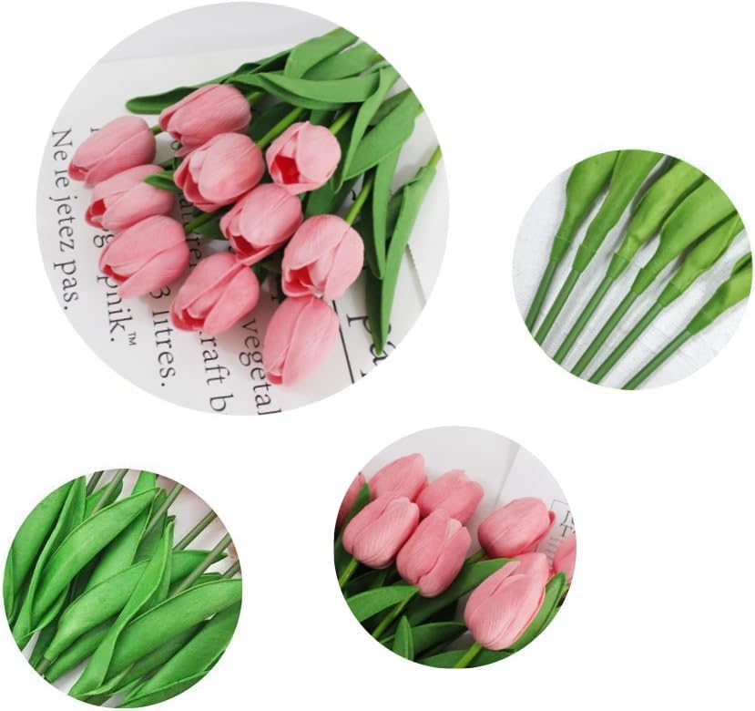 10 Pcs Real Touch PU Tulips – Artificial Faux Flowers for Home, Office, Wedding & Party Decorations (Pink)