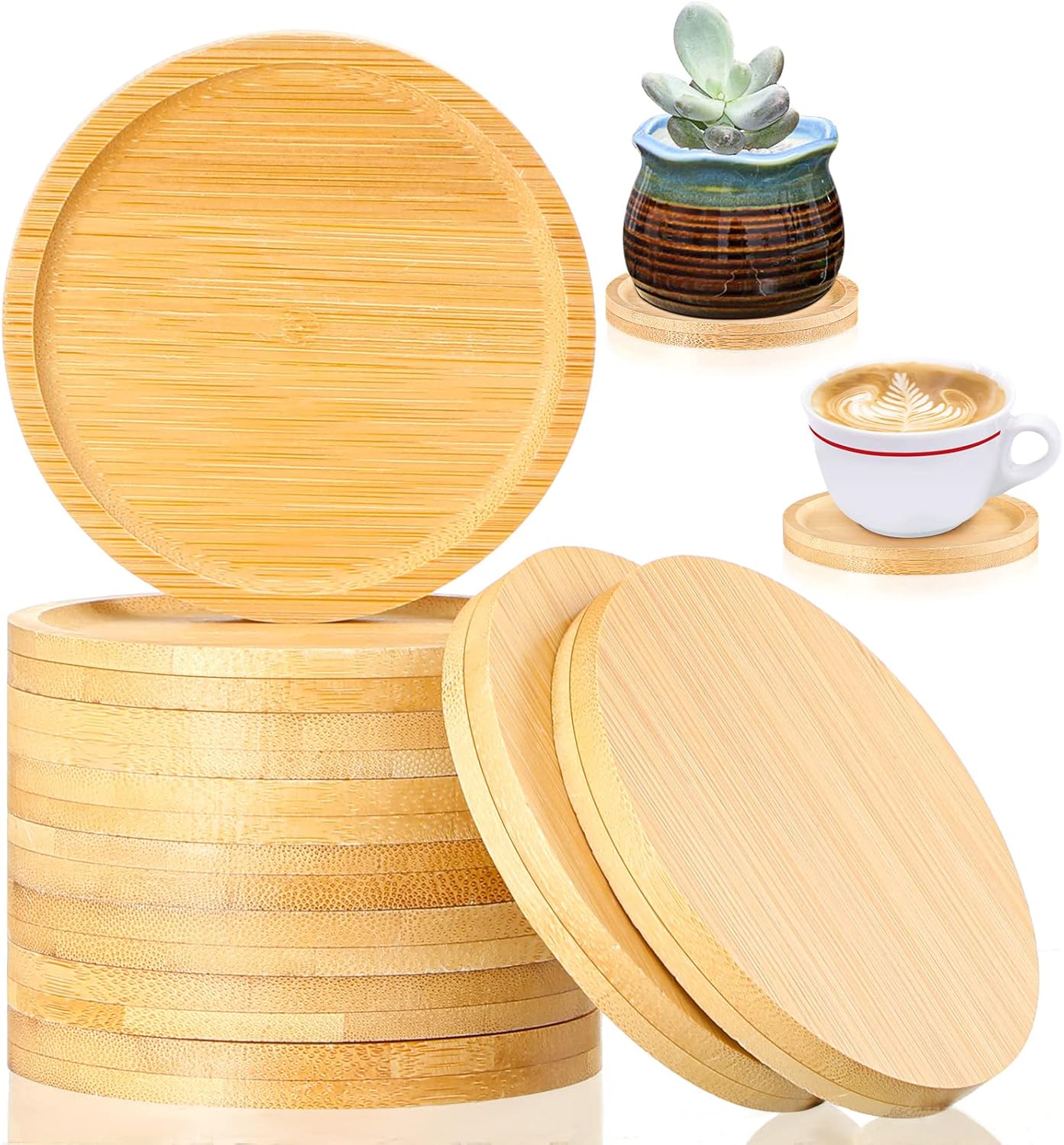 10 Pcs Round Bamboo Coasters