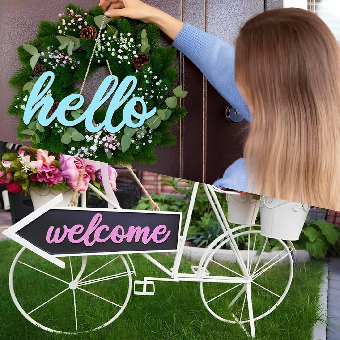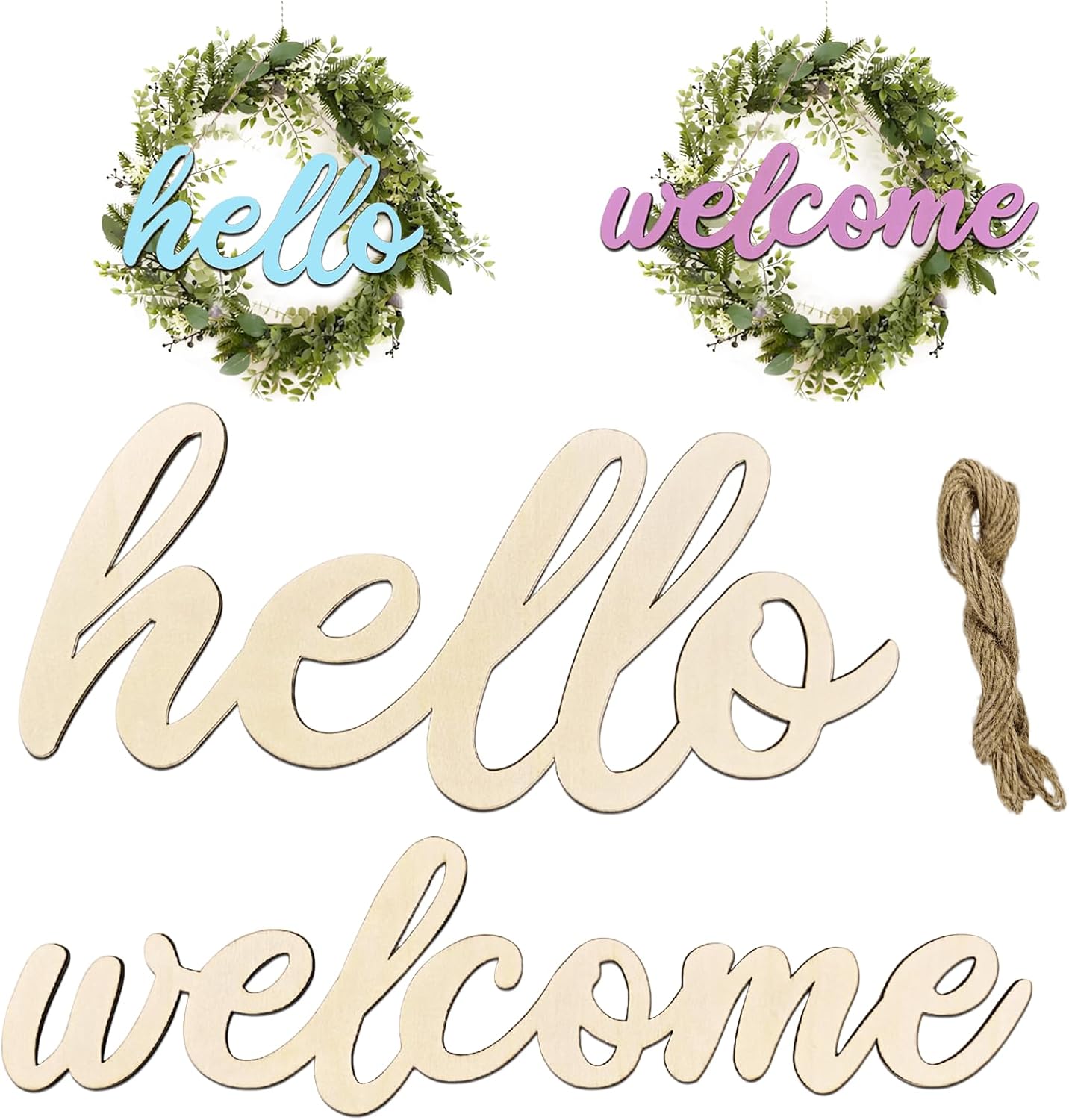 10 Pcs Unfinished Wooden Hello & Welcome Sign Wooden Cutout Letter Hello Welcome Sign