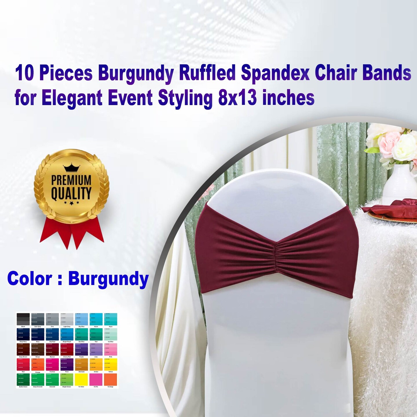10 Pieces Burgundy Ruffled Spandex Chair Bands for Elegant Event Styling 8x13 inches