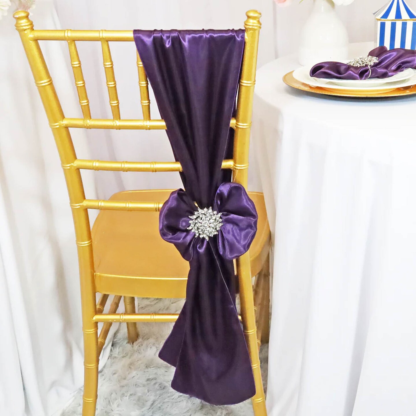 10 Pieces Eggplant Satin Chair Sashes 8"x108" Deep Purple Elegance for Events