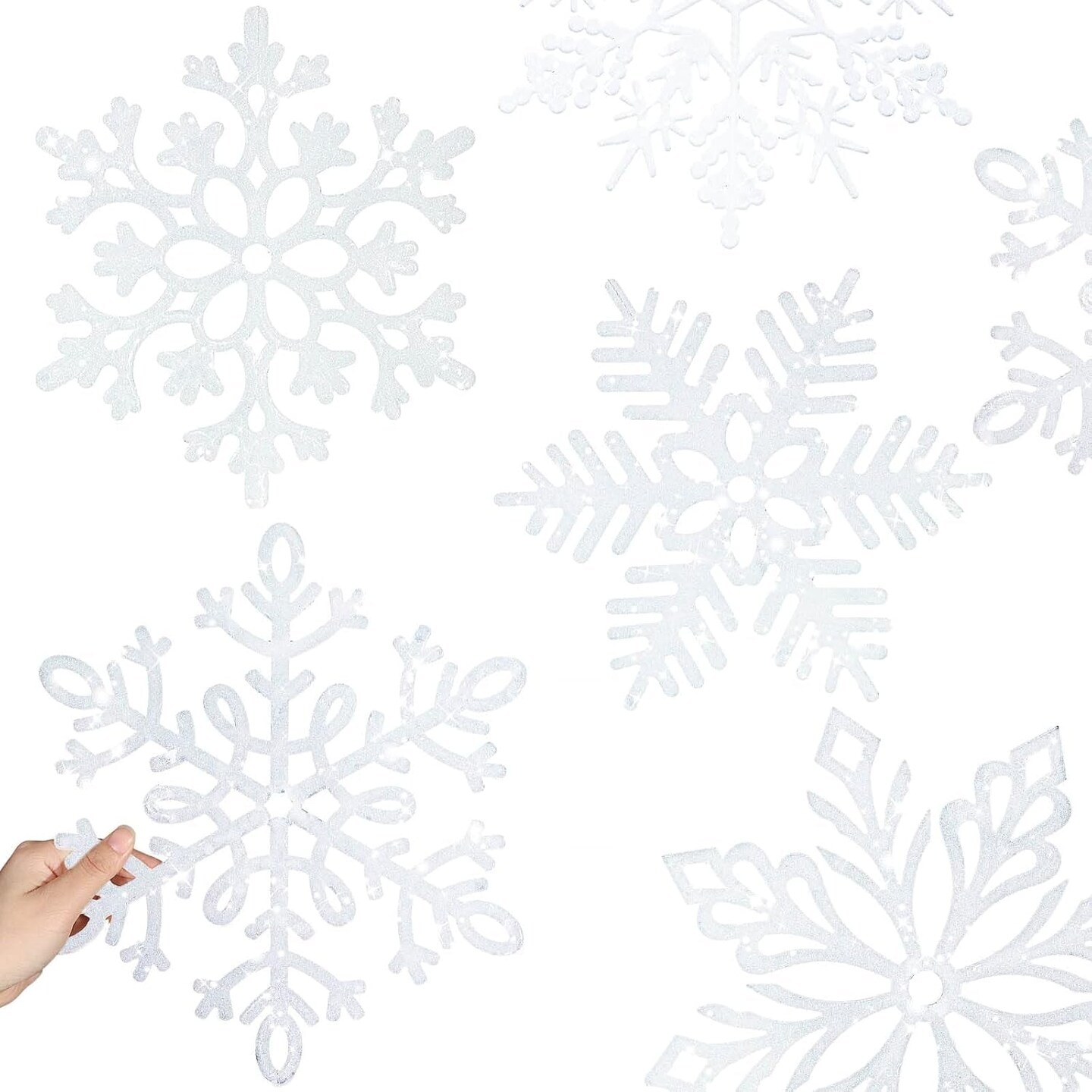 10 Pieces Large Snowflakes Ornaments 12'' Glittered Snowflakes Decorations Christmas Hanging Snowflake Decorations for Winter Christmas Tree Decorations Craft Snowflakes (White)