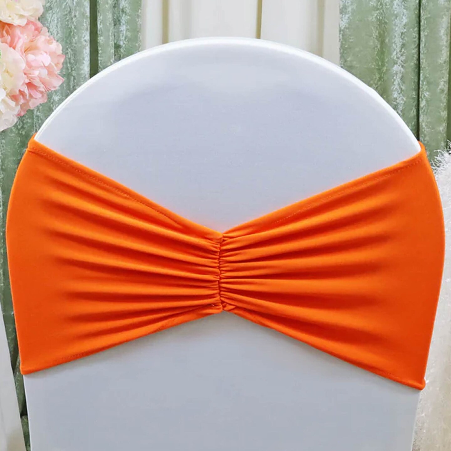 10 Pieces Orange Ruffled Spandex Chair Bands for Bright Event Accents 8x13 inches