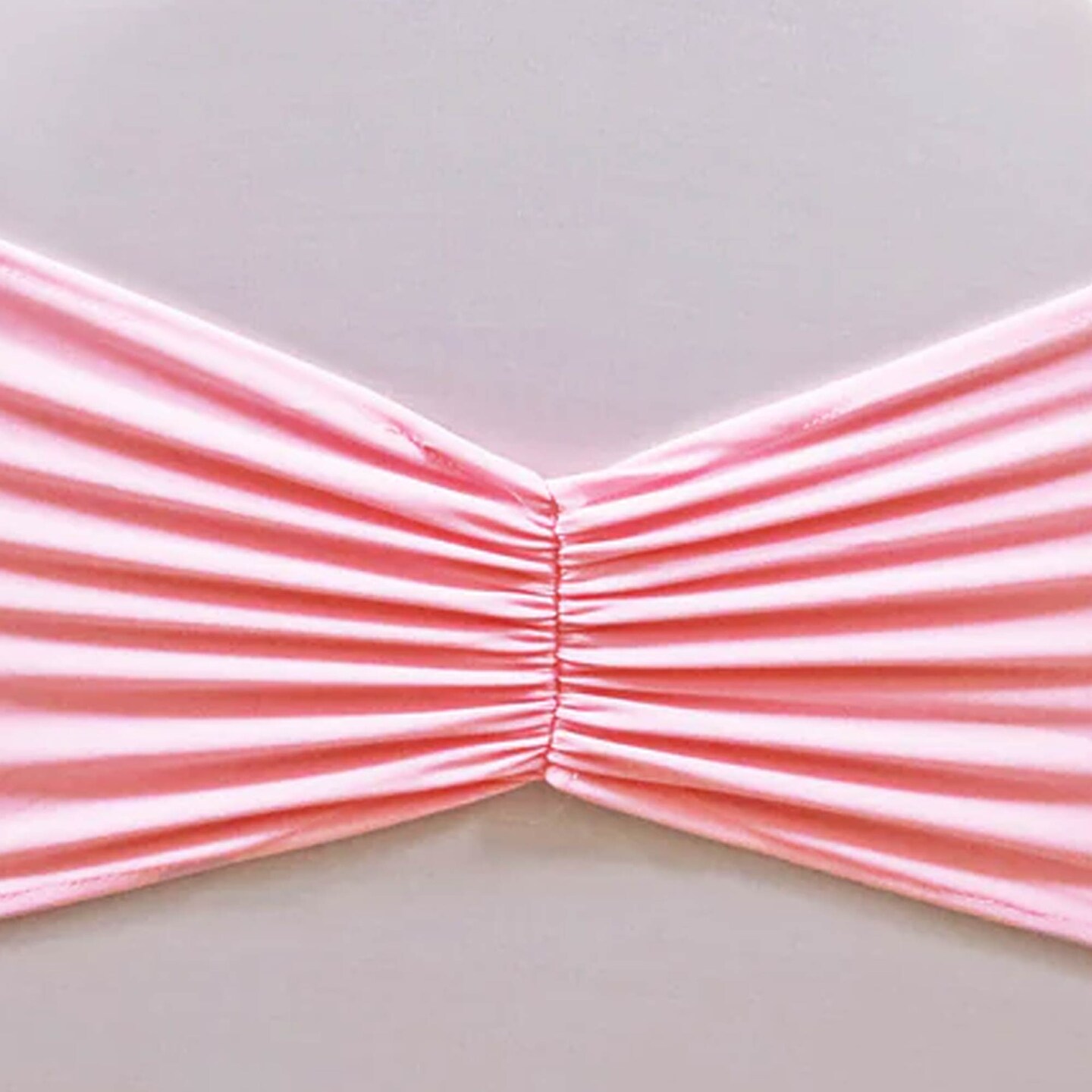 10 Pieces Pink Ruffled Spandex Chair Bands for Charming Event Decor 8x13 inches