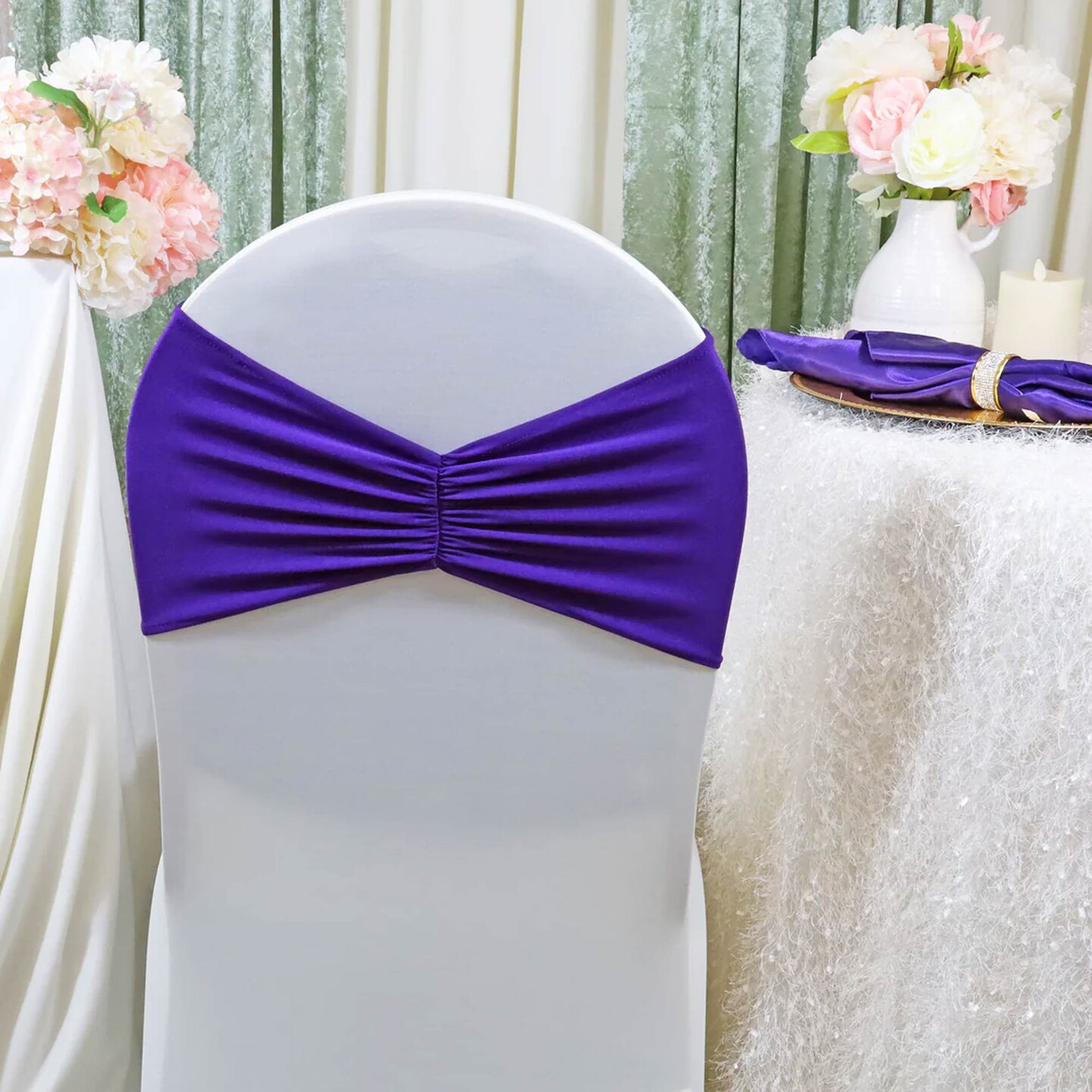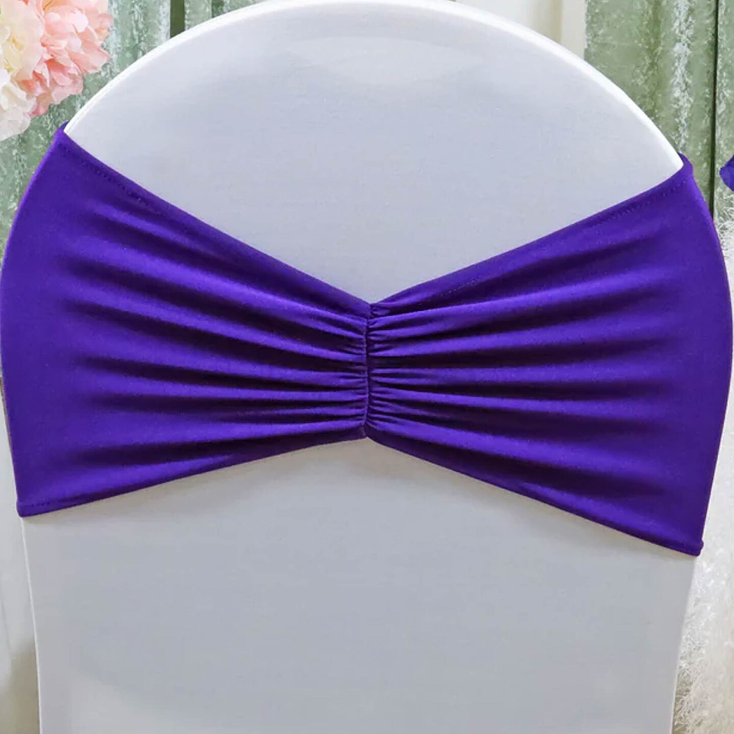 10 Pieces Regency Purple Ruffled Spandex Chair Bands for Elegant Event Decor 8x13 inches