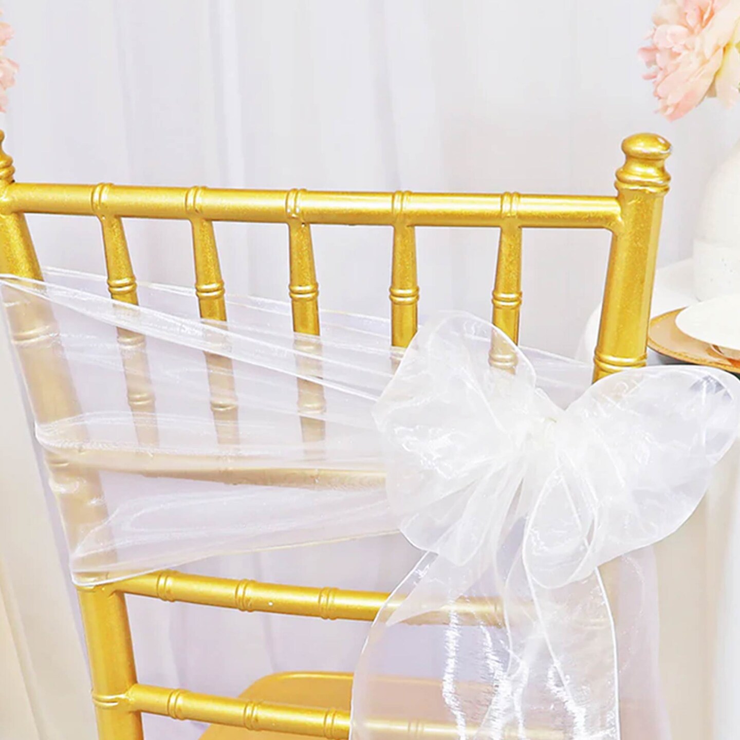 10 Pieces White Organza Chair Sashes for Elegant Wedding Decorations 8x108 inches