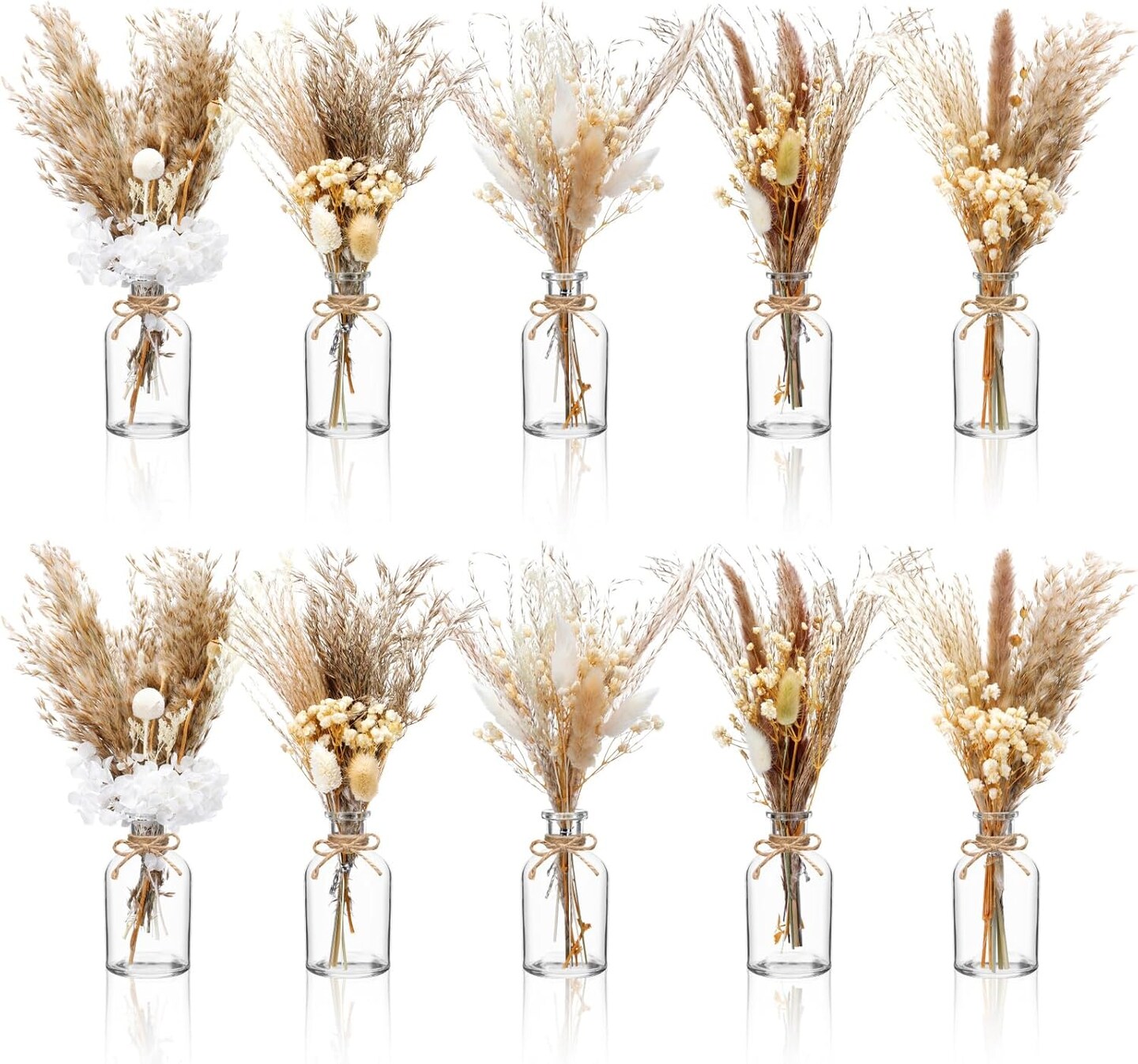 10 Set Boho Dried Pampas Grass Decor Centerpiece(clear)