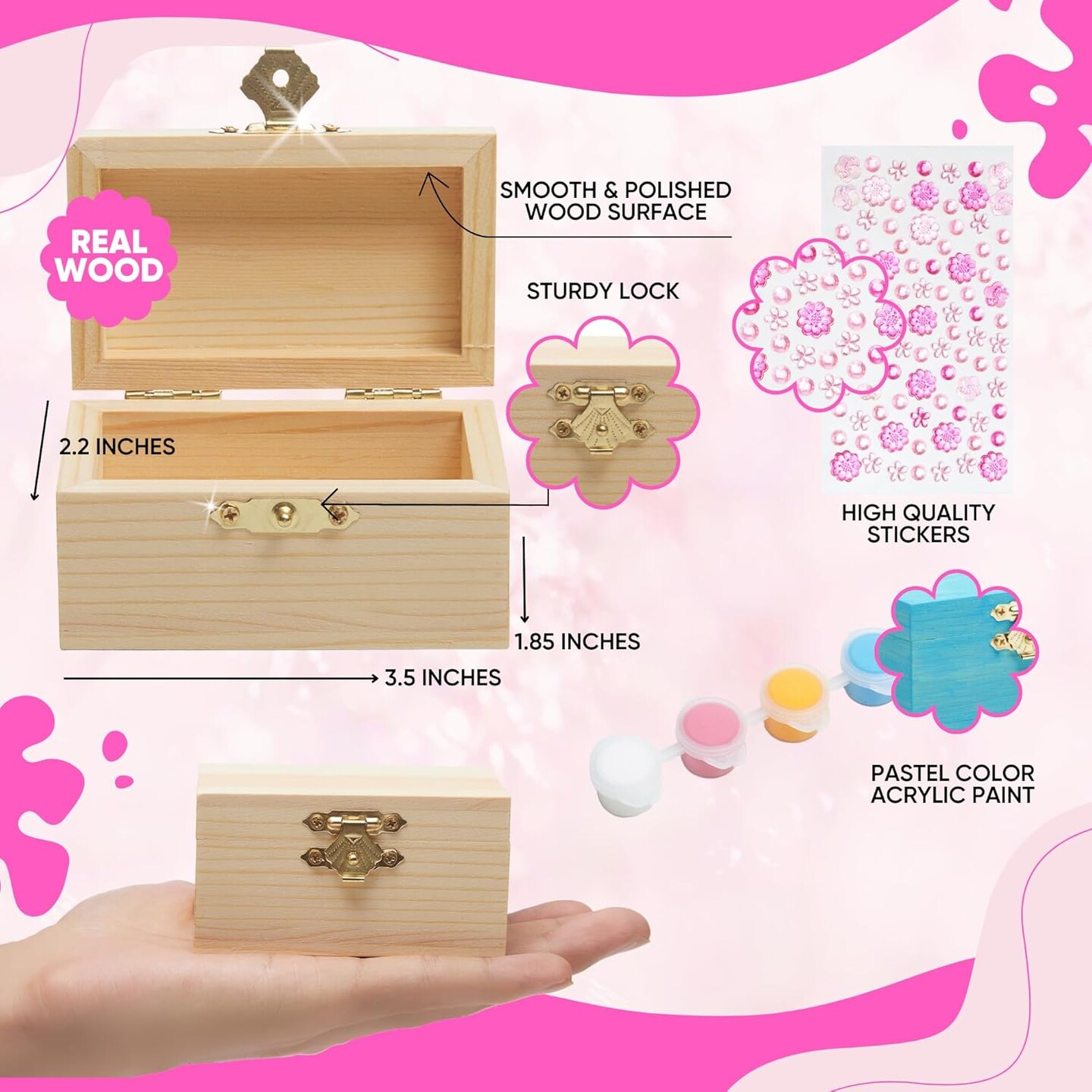 10 Sets Unfinished Wooden Jewelry Box Painting Kit for Kids with Stickers – Bulk Birthday & Party Favors, Goodie Bag Stuffers, Toy Return Gifts, Arts & Crafts Treasure Boxes