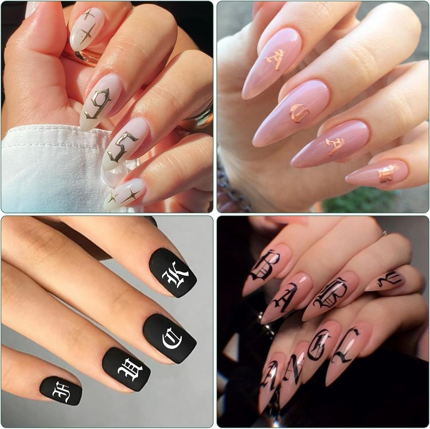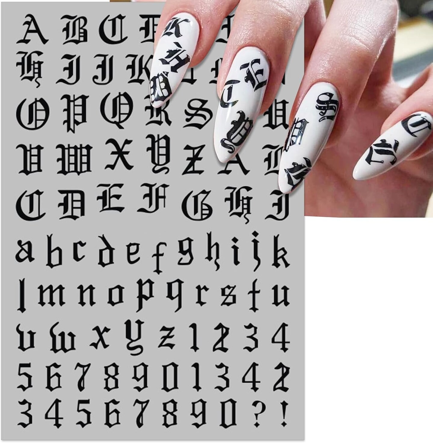 10 Sheets Letter Nail Art Stickers - 3D Old English Alphabet Number Nail Decals