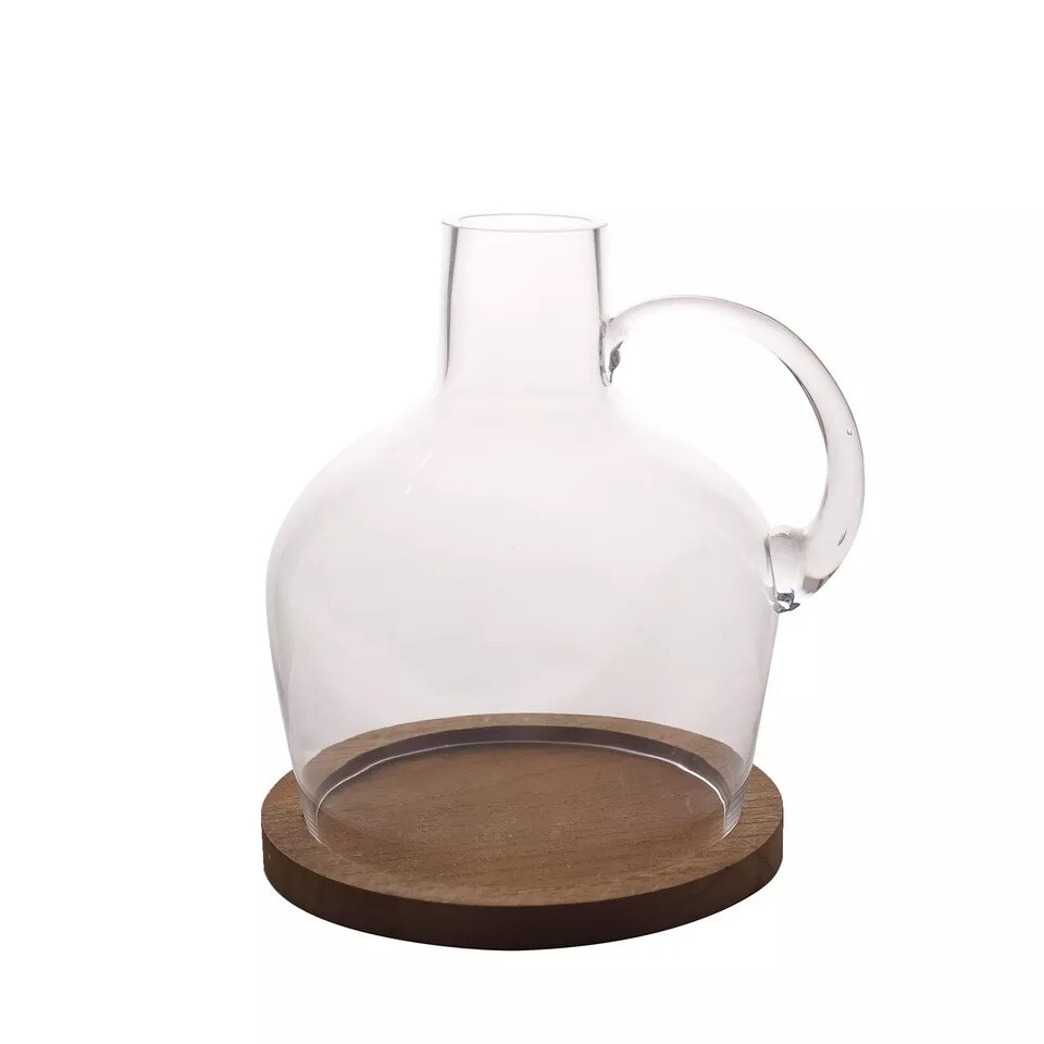 10" tall Clear Glass Vase Jug with Wooden Base Wedding Party Events Centerpieces