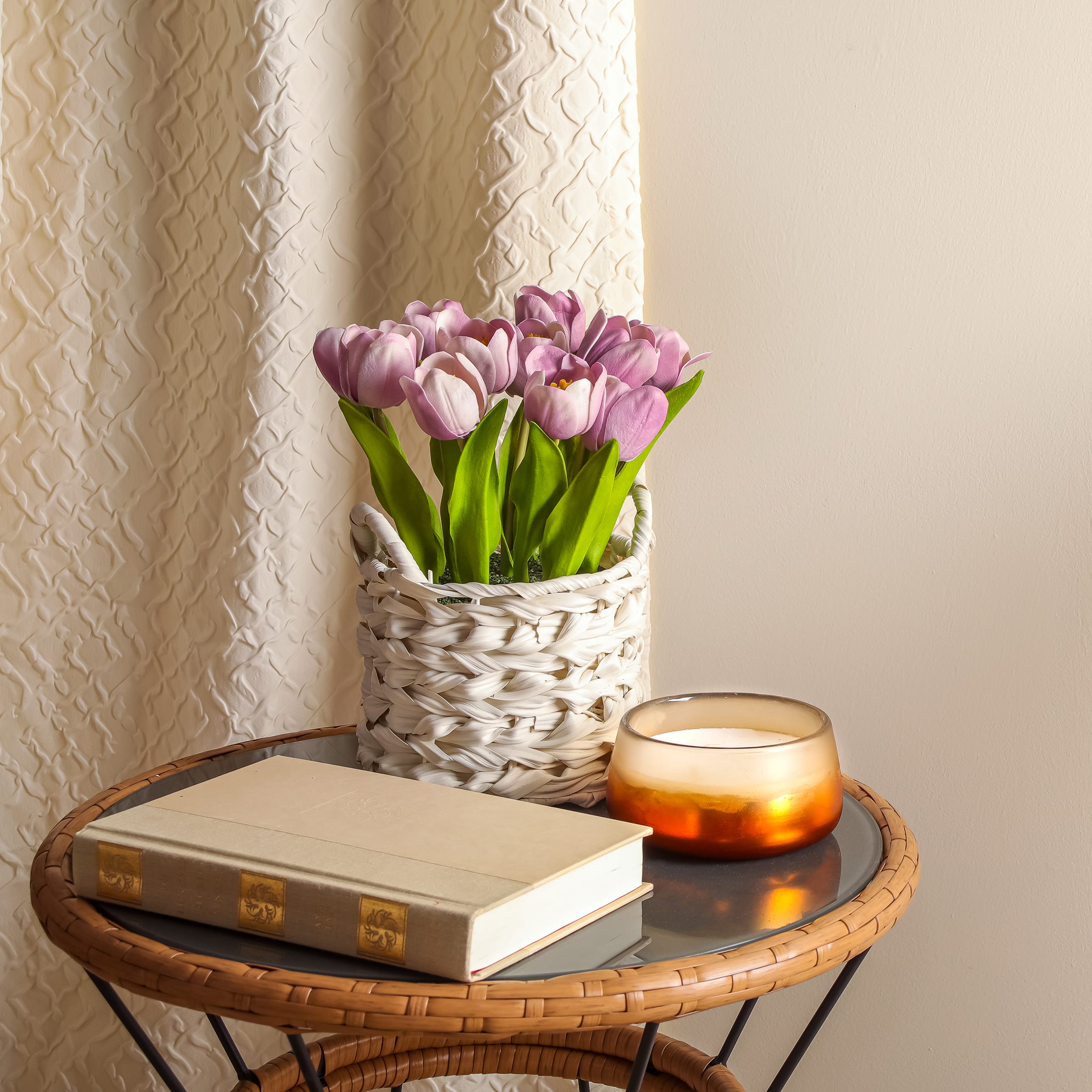 10" Tulip Bouquet in White Basket