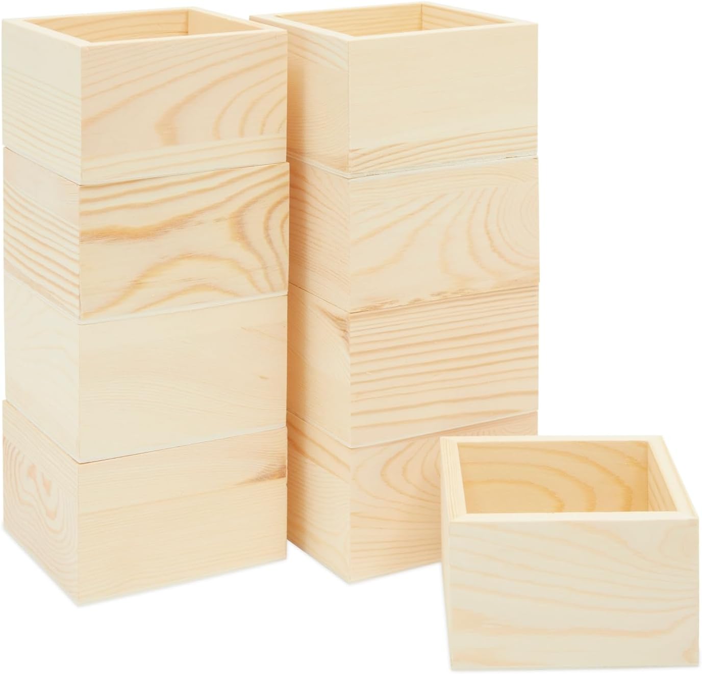 10 Unfinished Small Wooden Boxes for Crafts with 1 Sanding Sponge (4 In, 11 Pieces) - Mini Wooden Crates - Mini Crates For Centerpieces