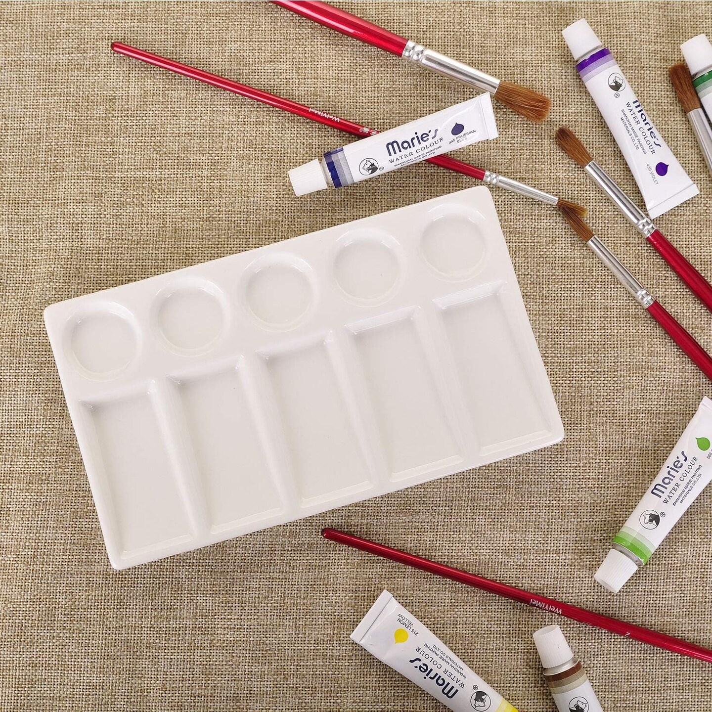 10 Wells White Rectangle Ceramic Artist Paint Palette, Porcelain Watercolor Palette, Ceramic Mixing Tray for Watercolor Gouache Painting, 7.6 inch