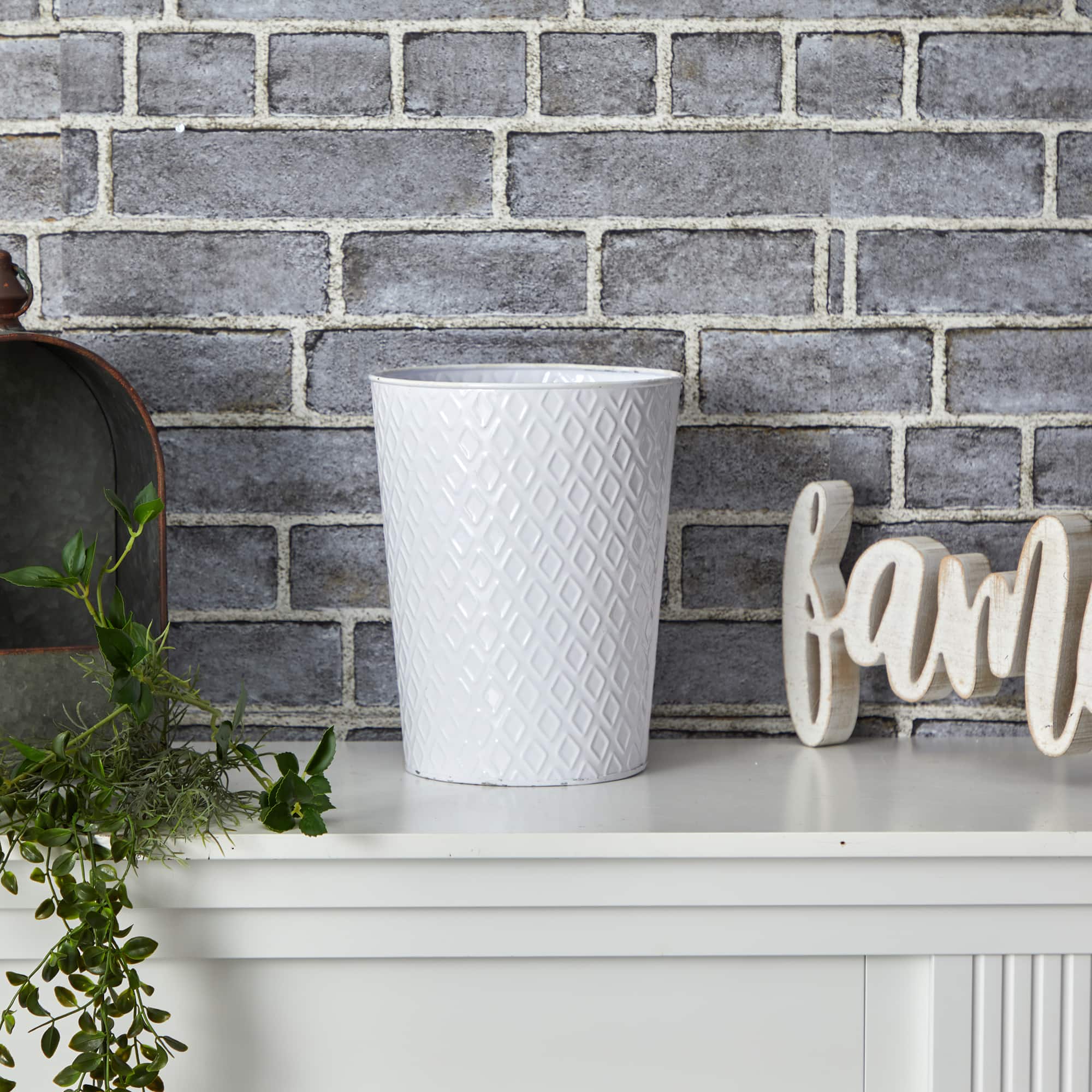 10" White Embossed Tin Planter